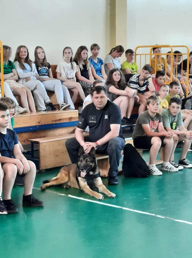 Funkcjonariusze przybliżyli uczniom zasady funkcjonowania współczesnego więzienia, zapoznali zebranych ze specyfiką pracy funkcjonariusza służby więziennej oraz przedstawili w jaki sposób prowadzona jest praca resocjalizacyjna i jaką rolę pełni pies funkcjonariusz.