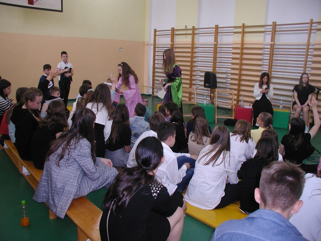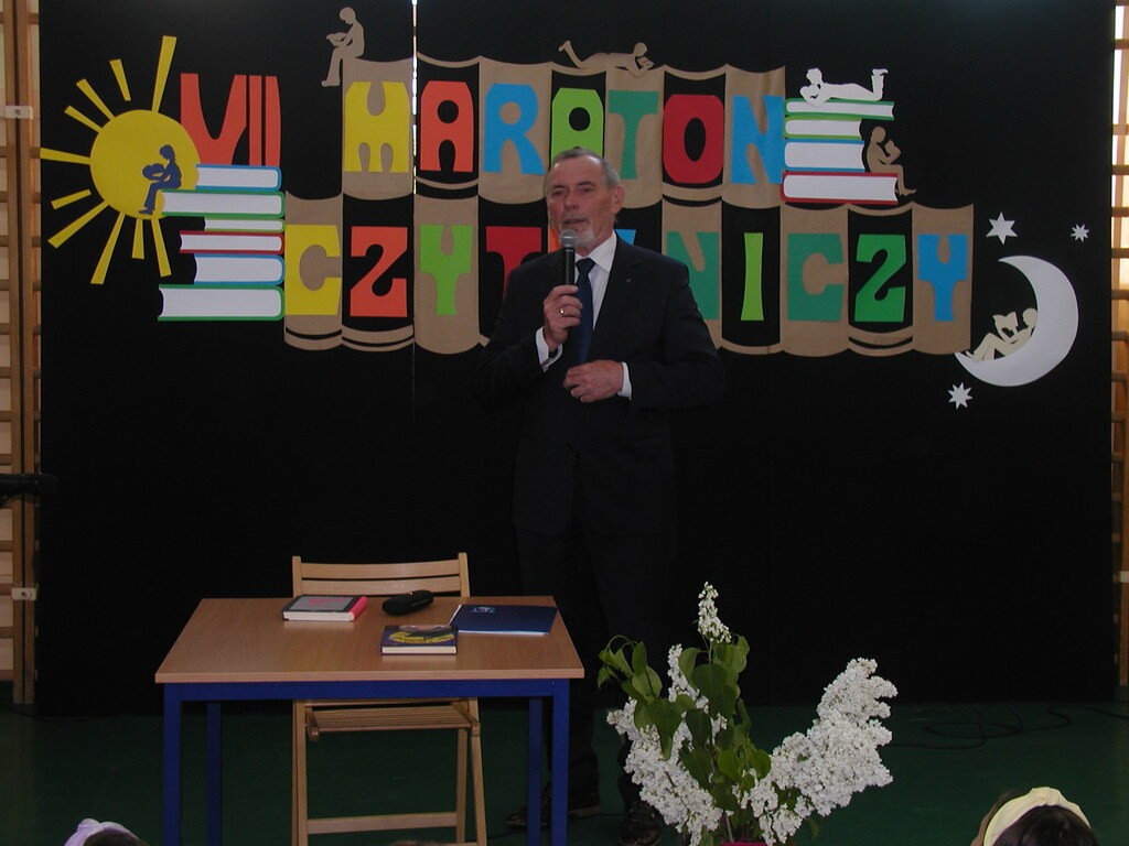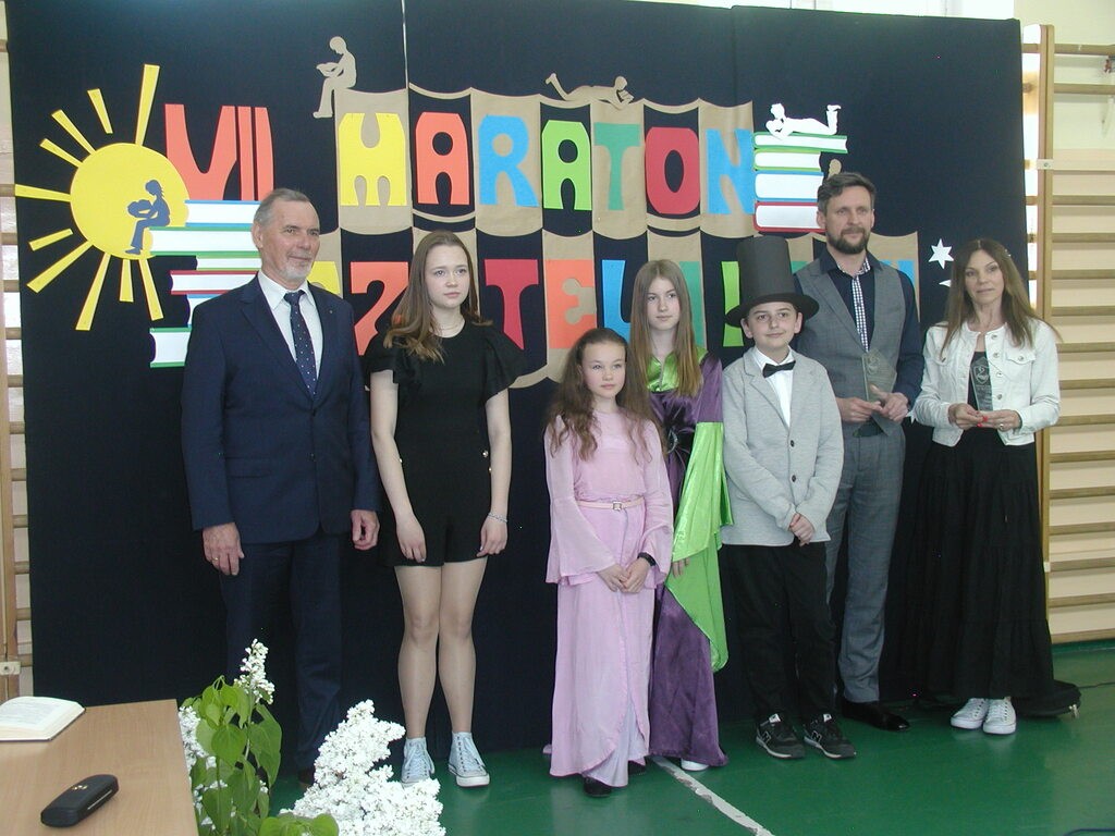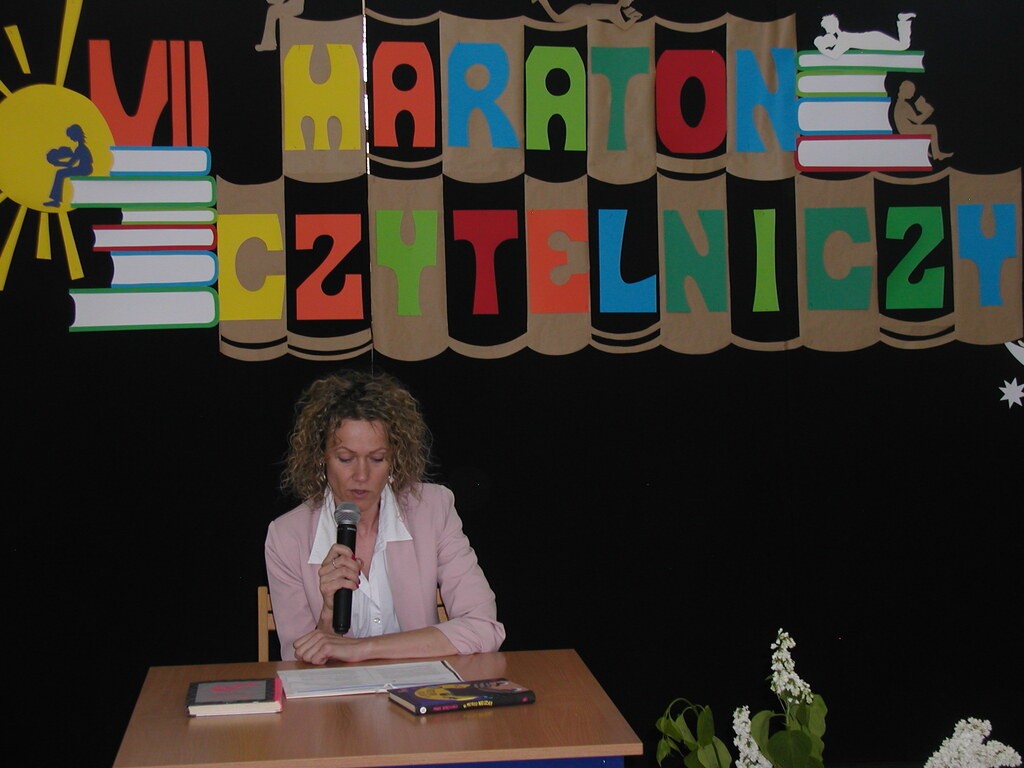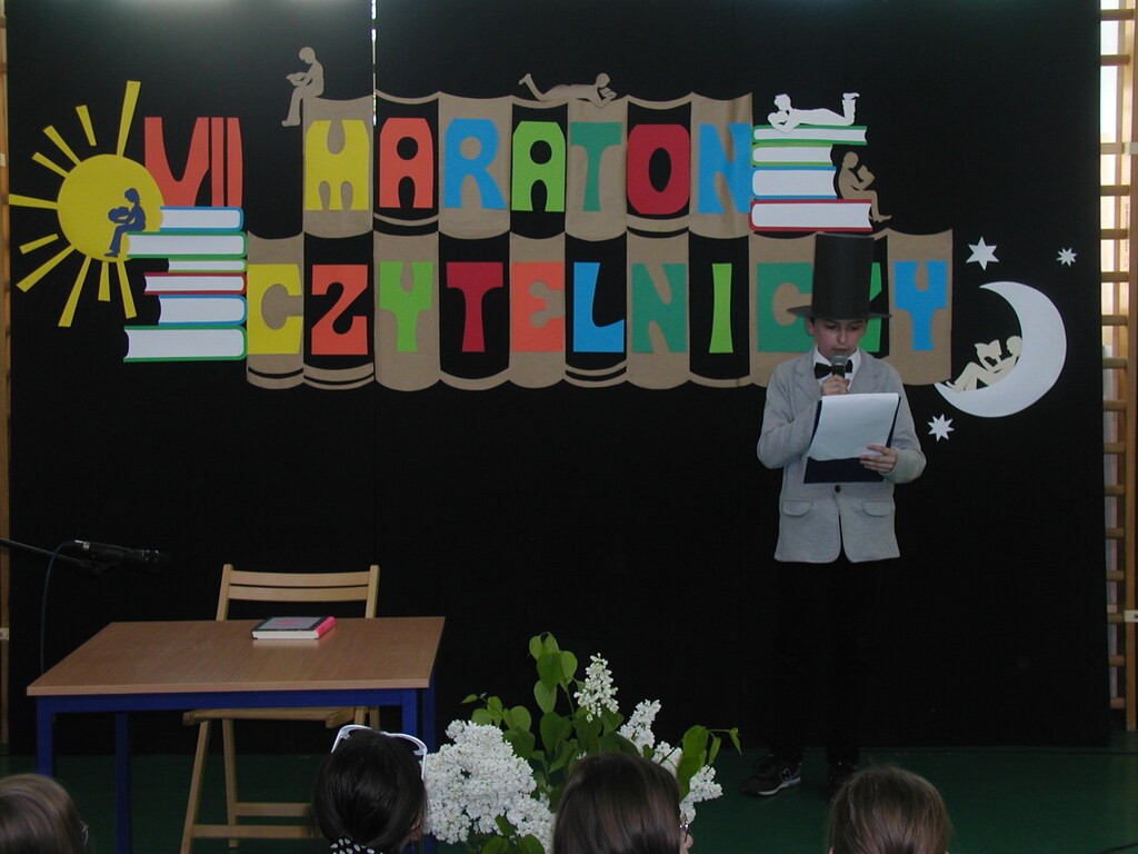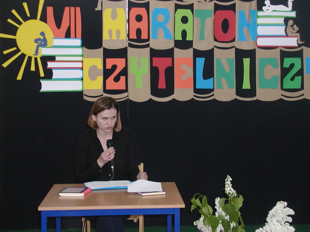17.05.2022 r. w drugim dniu VII Maratonu Czytelniczego zaproszeni goście reprezentujący instytucje kulturalno-oświatowe: Radio Plus pani Magdalena Gliszczyńska, Kino Helios w Radomiu, pan Andrzej Ciesielski, czytali fragmenty książki „Malutka czarownica” Otfrieda Preusslera. Opowiadania przeczytała również Oliwia Kowalczyk, uczennica klasy 8 a. Na spotkaniu obecni byli uczniowie z klas IV - VI. Zebrani z ciekawością wysłuchali tekstów i wzięli udział w przygotowanych quizach.