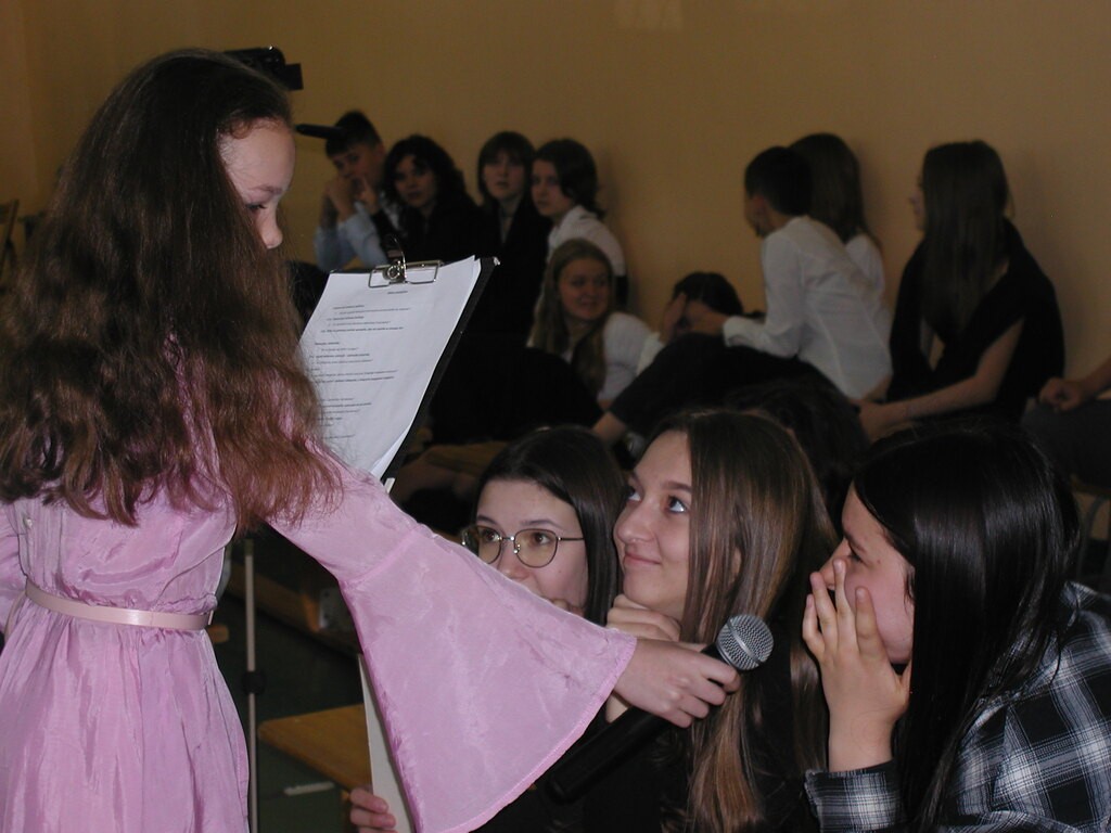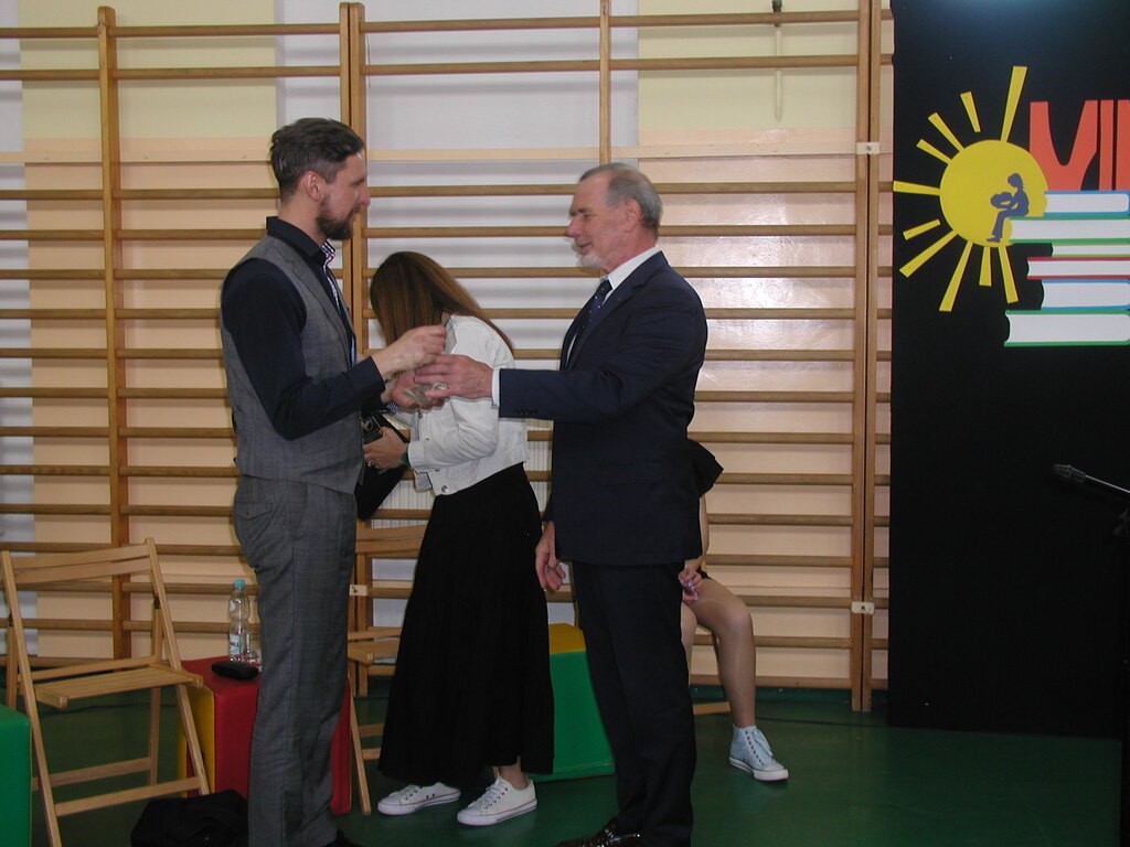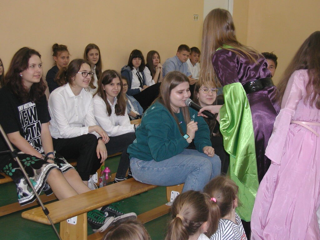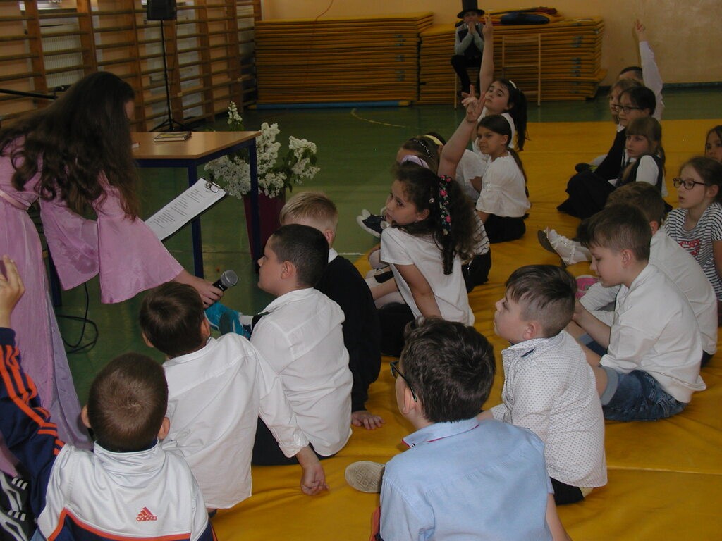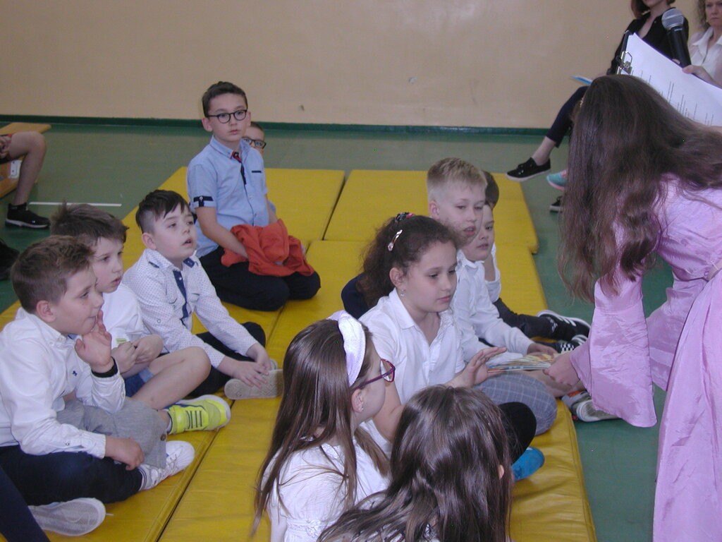 17.05.2022 r. w drugim dniu VII Maratonu Czytelniczego zaproszeni goście reprezentujący instytucje kulturalno-oświatowe: Radio Plus pani Magdalena Gliszczyńska, Kino Helios w Radomiu, pan Andrzej Ciesielski, czytali fragmenty książki „Malutka czarownica” Otfrieda Preusslera. Opowiadania przeczytała również Oliwia Kowalczyk, uczennica klasy 8 a. Na spotkaniu obecni byli uczniowie z klas IV - VI. Zebrani z ciekawością wysłuchali tekstów i wzięli udział w przygotowanych quizach.