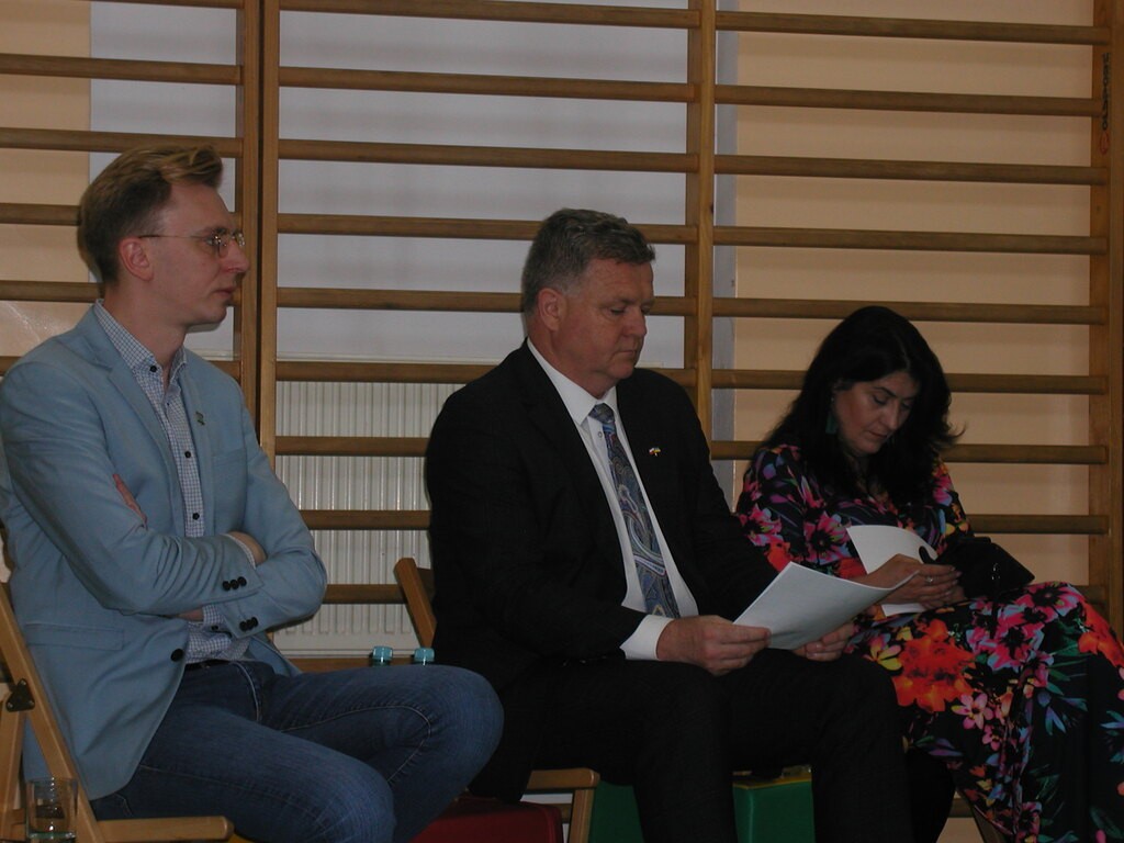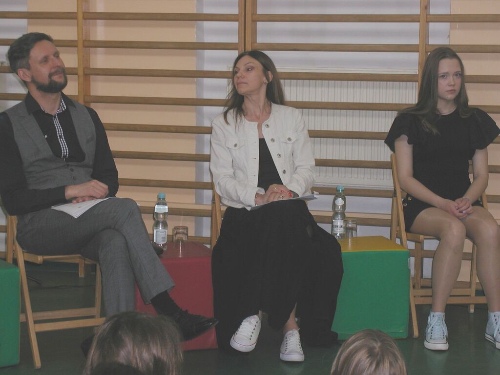 18.05.2022 r. w trzecim dniu VII Maratonu Czytelniczego zaproszeni goście reprezentujący instytucje kulturalno-oświatowe: Miejska Biblioteka Publiczna im. Józefa A. i Andrzeja S. Załuskich: p. Przemysław Czaja, p. Katarzyna Kosterna; Muzeum im. Jacka Malczewskiego: p. Ilona Pulnar – Ferdjani, p. Adam Duszyk; Mazowieckie Centrum Sztuki Współczesnej „Elektrownia” p. Ewelina Witkowska, p. Ewelina Aleksandrak czytali fragmenty książki Otfrieda Preusslera „Malutka czarownica”, Pawła Beręsewicza „Naprzód Małgośka”. Na dzisiejszym spotkaniu obecni byli uczniowie z klas VII - VIII. Zebrani z ciekawością wysłuchali tekstów i wzięli udział w przygotowanych quizach.
