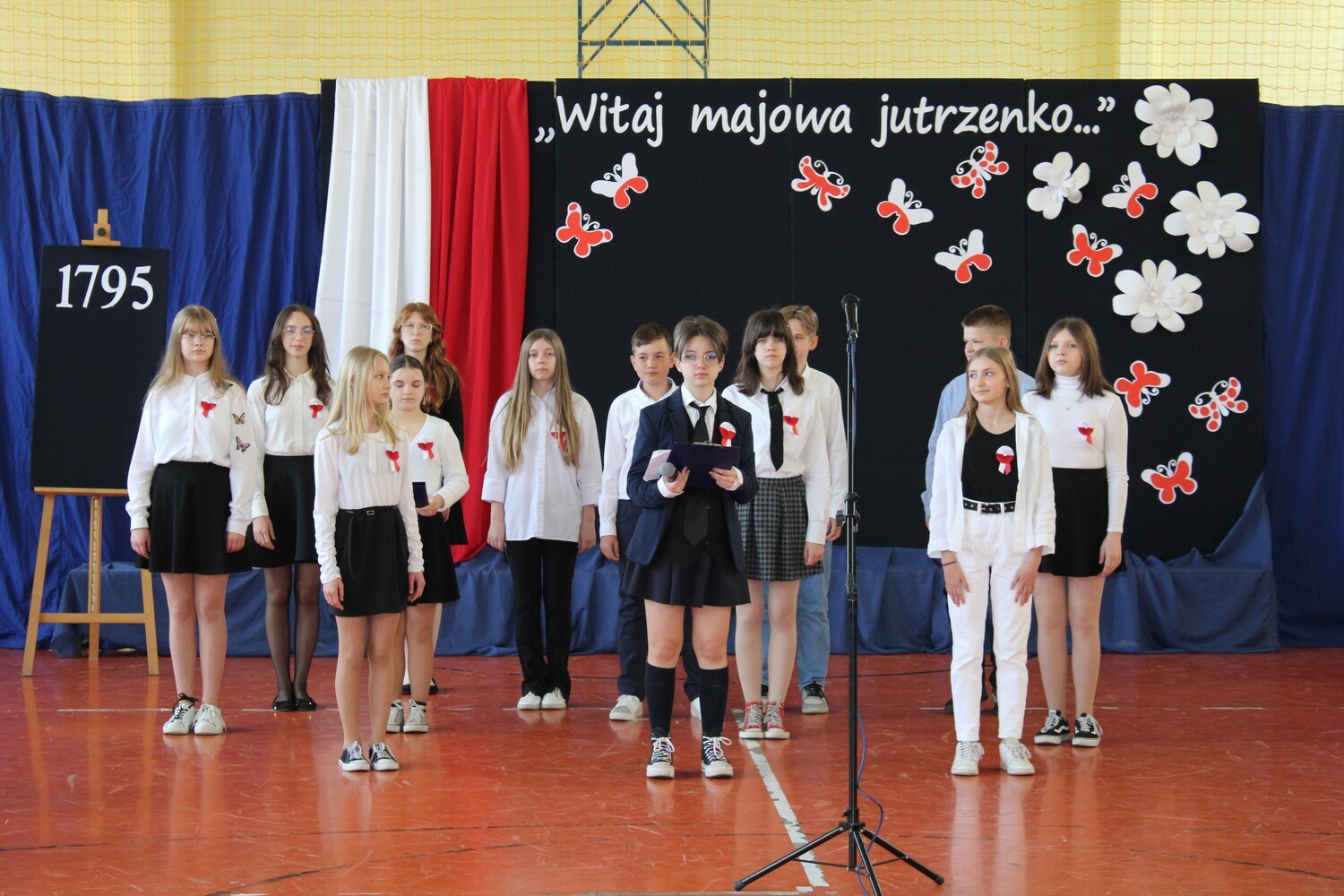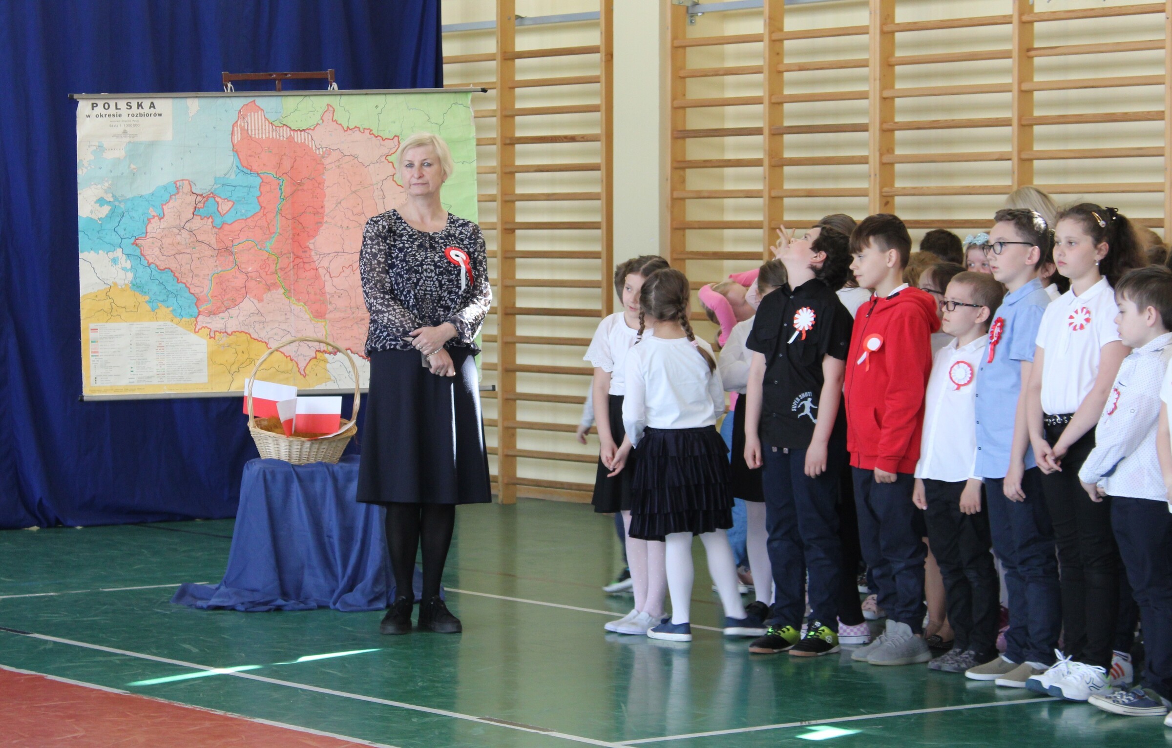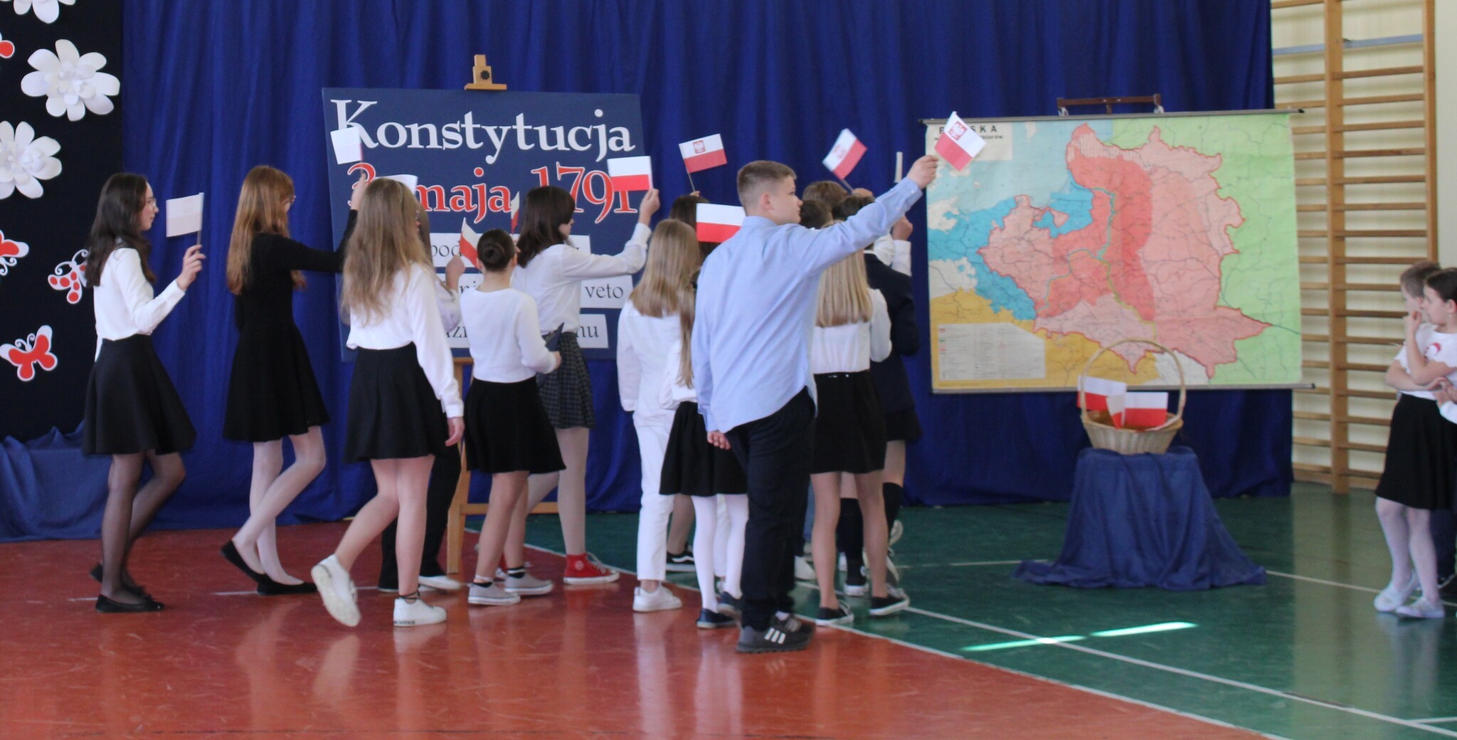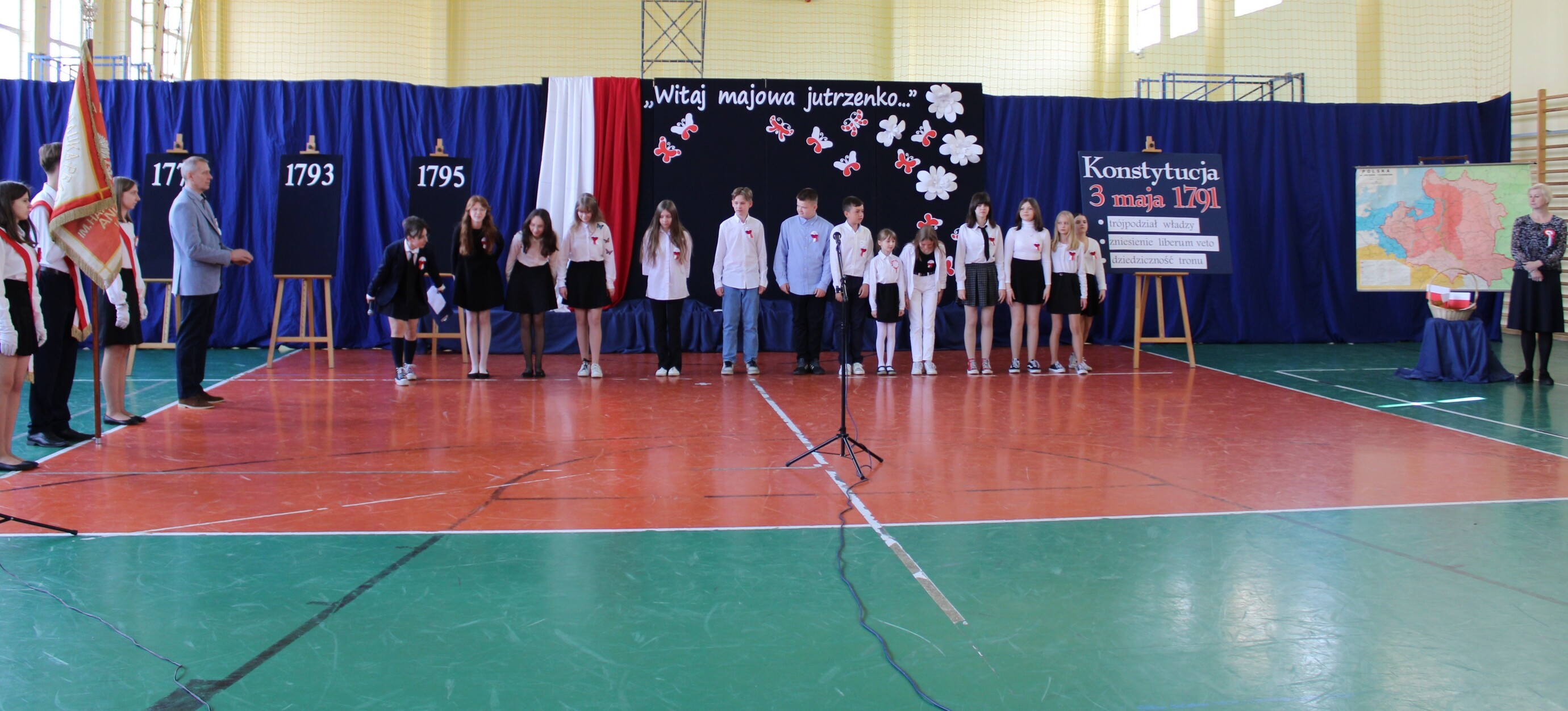 4 maja 2022 r. odbyła się w naszej szkole uroczystość upamiętniająca kolejną rocznicę uchwalenia Konstytucji 3 Maja. Społeczność szkolna w odświętnych strojach, z biało-czerwonymi kotylionami brała udział w akademii. W programie artystycznym uczniowie z klasy 7d i uczennica z kl. 2b pod kierunkiem nauczycieli: Hanny Gniewek i Lidii Sitarz przypomnieli najważniejsze wydarzenia historyczne, które doprowadziły do uchwalenia pierwszej w Europie konstytucji. Była to okazja do refleksji nad wydarzeniami sprzed 231 lat, mającymi ogromne znaczenia dla następnych pokoleń, do pielęgnowania patriotyzmu oraz przeżycia dumy z tego, że jest się Polakiem.