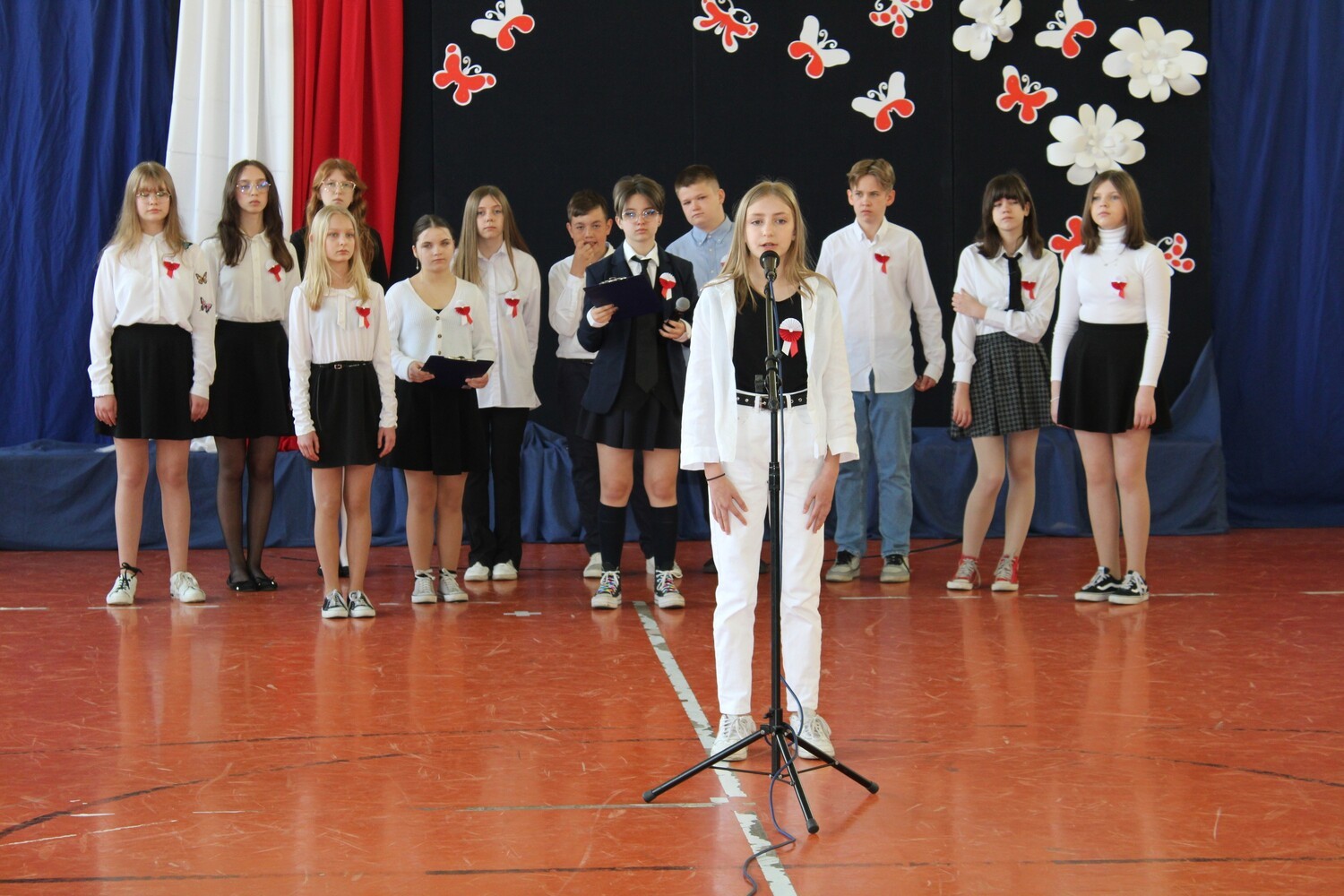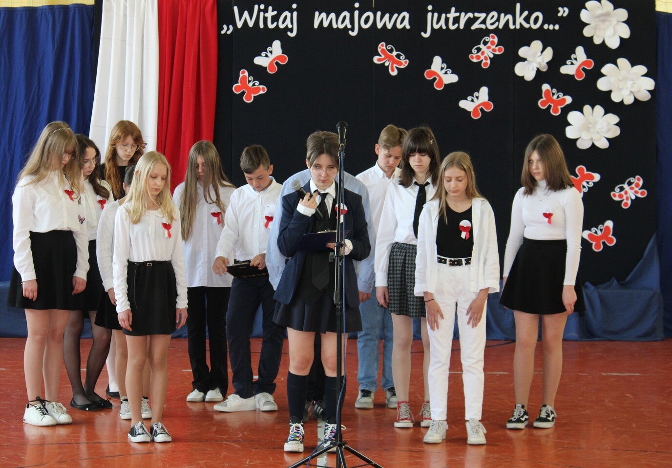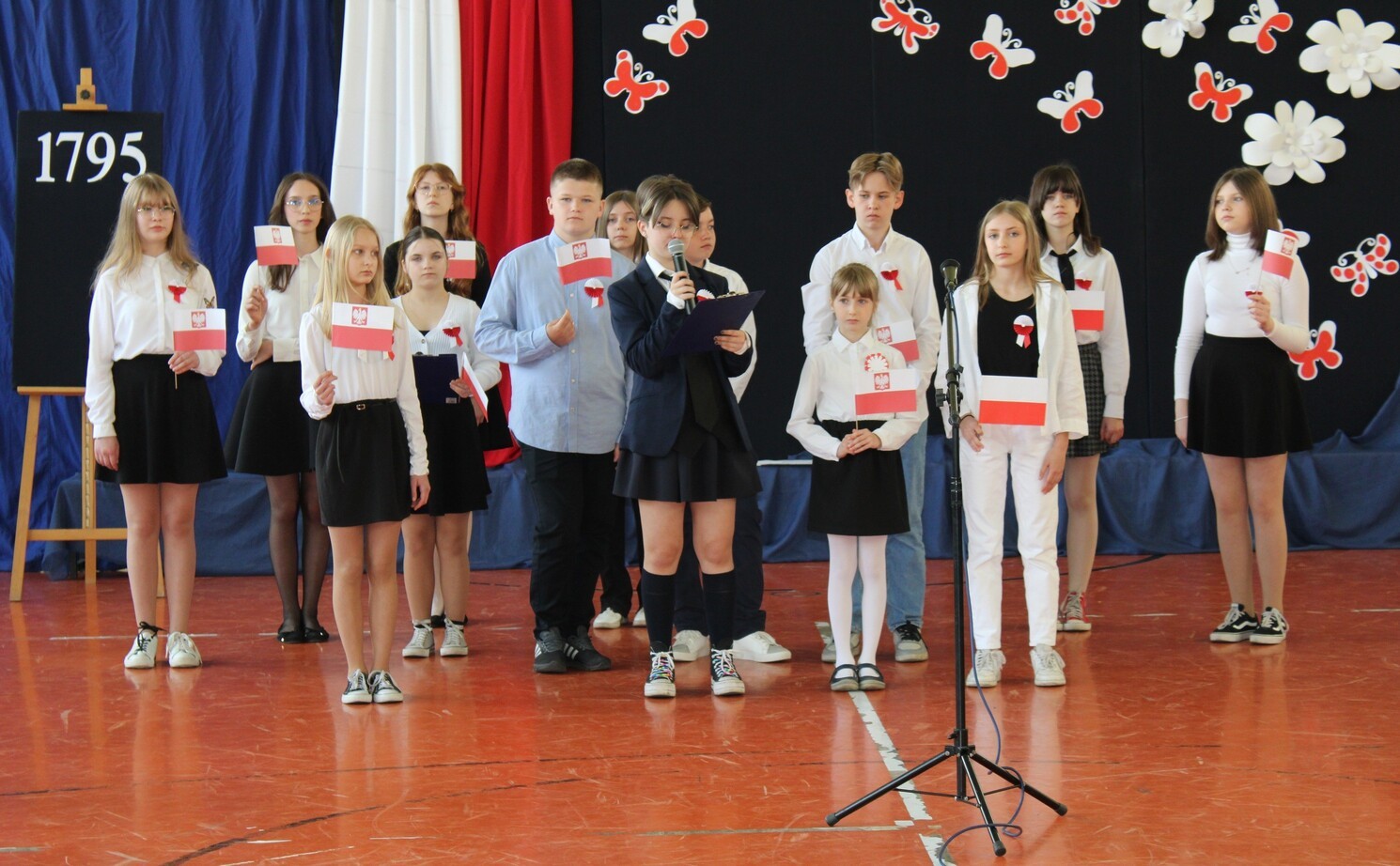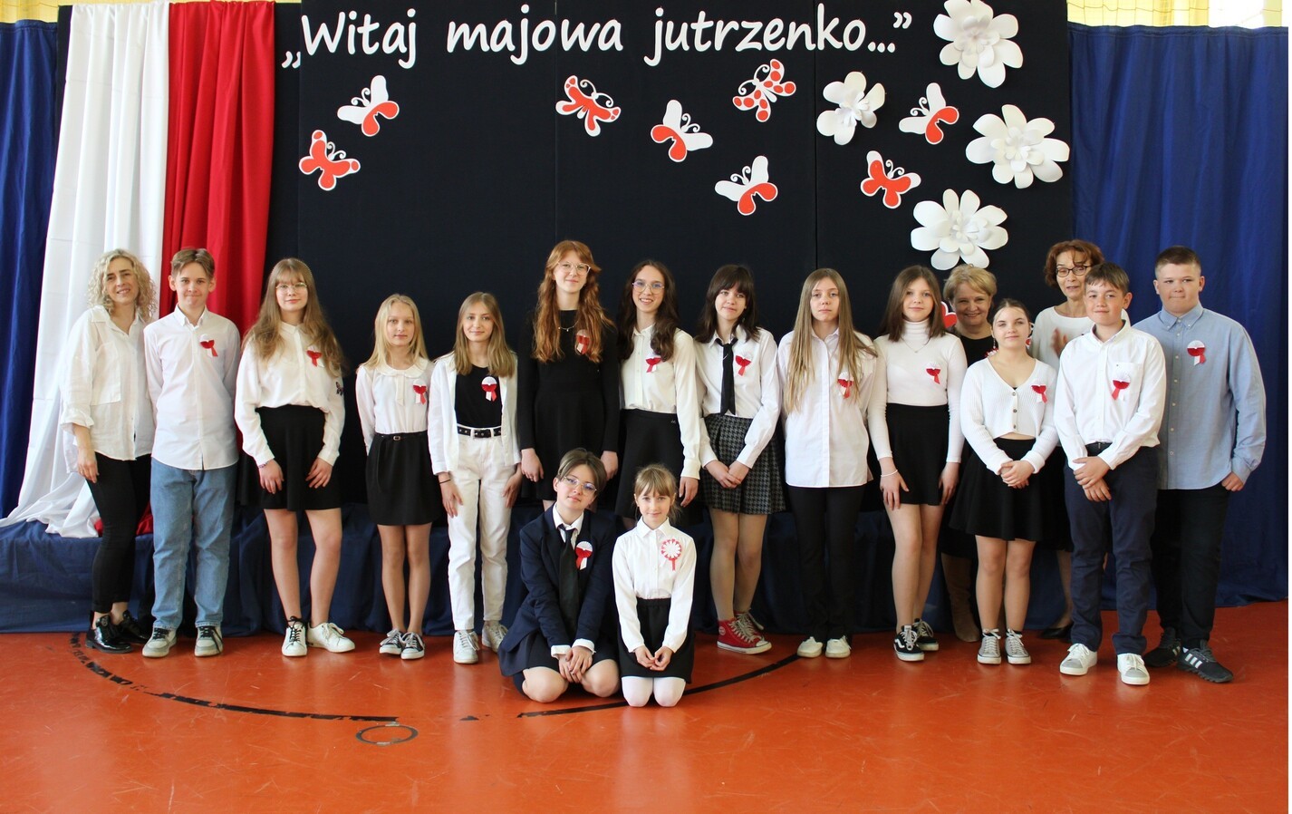 4 maja 2022 r. odbyła się w naszej szkole uroczystość upamiętniająca kolejną rocznicę uchwalenia Konstytucji 3 Maja. Społeczność szkolna w odświętnych strojach, z biało-czerwonymi kotylionami brała udział w akademii. W programie artystycznym uczniowie z klasy 7d i uczennica z kl. 2b pod kierunkiem nauczycieli: Hanny Gniewek i Lidii Sitarz przypomnieli najważniejsze wydarzenia historyczne, które doprowadziły do uchwalenia pierwszej w Europie konstytucji. Była to okazja do refleksji nad wydarzeniami sprzed 231 lat, mającymi ogromne znaczenia dla następnych pokoleń, do pielęgnowania patriotyzmu oraz przeżycia dumy z tego, że jest się Polakiem.
