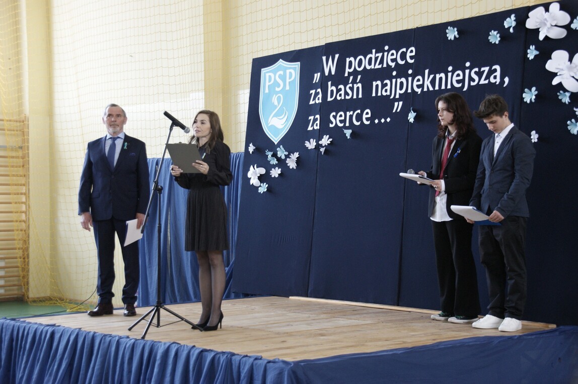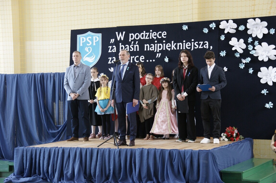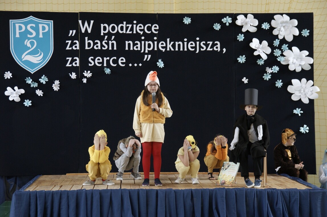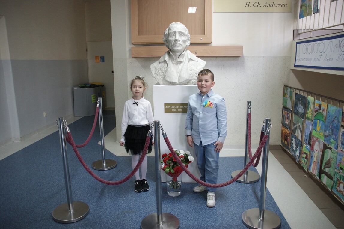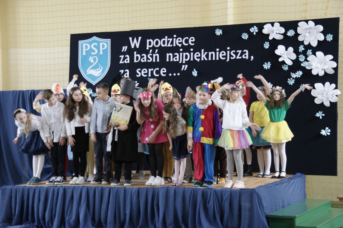 Święto Patrona jest jednym z ważniejszych wydarzeń w kalendarzu szkolnym. To uroczystość całej społeczności, dla której Hans Christian Andersen jest niedoścignionym wzorem pisarza i człowieka. W dniu 8 kwietnia 2022 r. w murach szkoły odbył się uroczysty koncert pod hasłem: „W podzięce za baśń najpiękniejszą, za serce…” w wykonaniu naszych uczniów. W części oficjalnej uroczystości dyrektor szkoły p. Marek Sternalski powitał zaproszonych gości i społeczność szkolną. Wręczył nagrody laureatom XV Ogólnopolskiego Konkursu Literackiego pod hasłem: „I Ty możesz zostać baśniopisarzem”. Złożono kwiaty przy popiersiu Andersena, którego otoczenie zostało ozdobione najpiękniejszymi pracami plastycznymi II Ogólnopolskiego Konkursu Plastycznego pod hasłem: „Zaczarowany świat baśni Hansa Ch. Andersena”. W części artystycznej koncertu na scenie szkolnej zaprezentowały się największe talenty uczniowskie. Z zaangażowaniem i pasją młodzi artyści przygotowali występy: Szkolnego Teatrzyku „Bajkoludki”, taniec kwiatów z oddziału „O”, recytację, śpiew chóru szkolnego, taniec akrobatyczny, hip – hop, duet muzyczny klarnet i skrzypce. Bardzo podobał się pokaz mażoretek. Z okazji naszego święta szkoły partnerskie z projektu ERASMUS+ przesłały serdeczne pozdrowienia, które zostały wyświetlone na specjalnie przygotowanym ekranie. Święto Patrona pokazało niezwykłą chęć uczniów, by być godnym szkoły, ustawicznie pracując nad sobą, stawiając sobie wysokie wymagania. Rozumieją, że imię patrona i nadany tytuł „Szkoła Talentów” zobowiązują do rozwijania własnych zainteresowań i zdolności. Mieliśmy znakomitą okazję, by się o tym przekonać. Andersen może być z nich dumny.