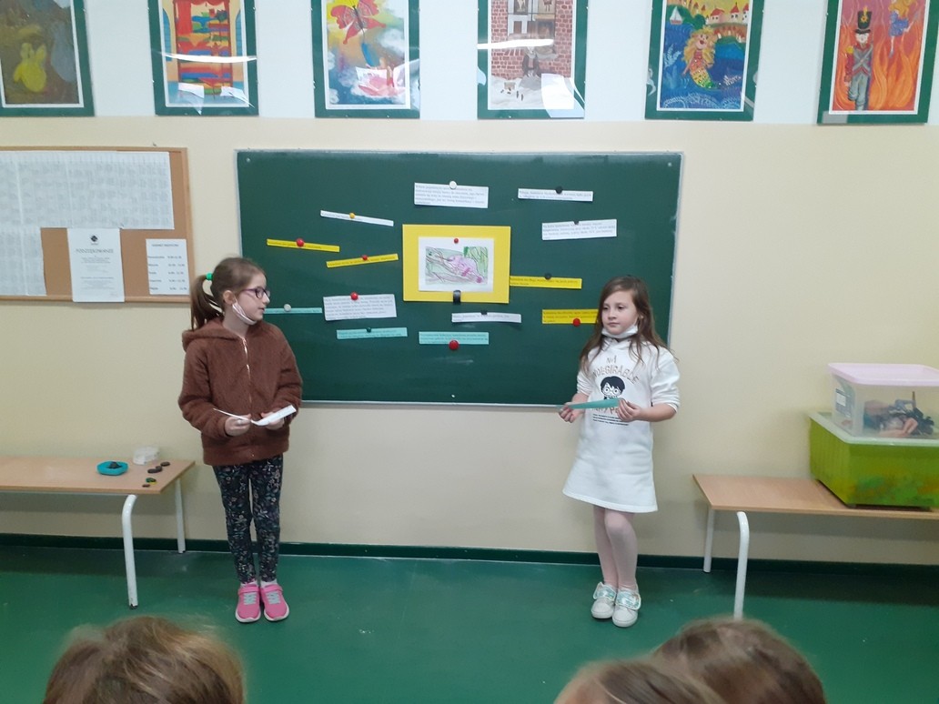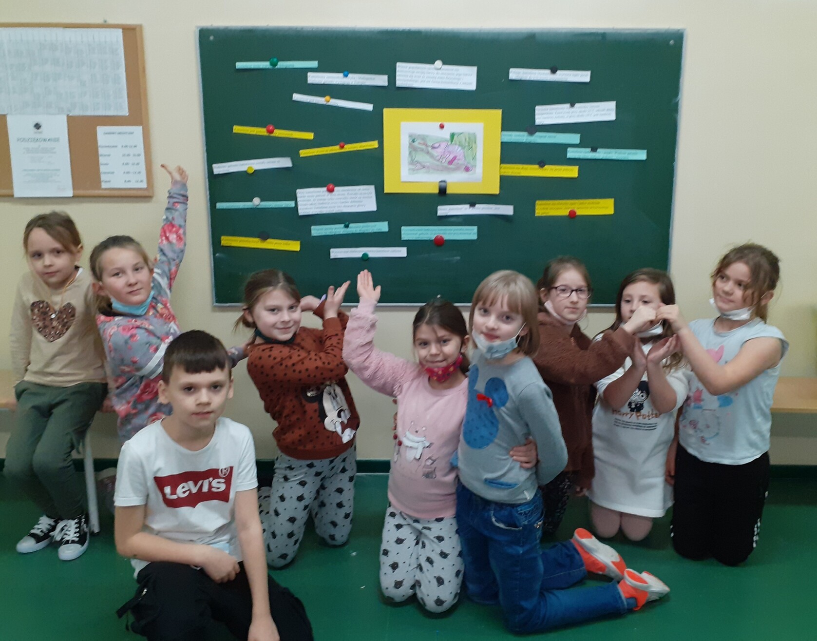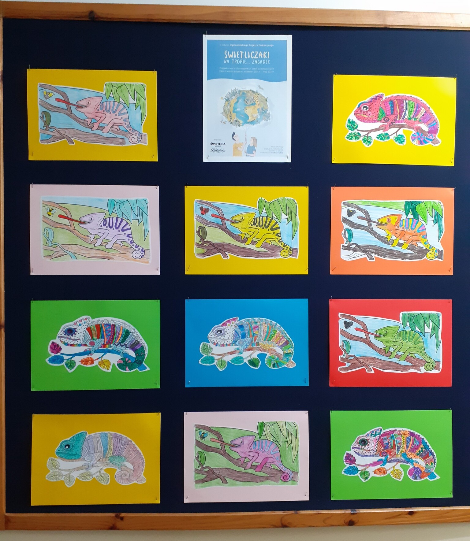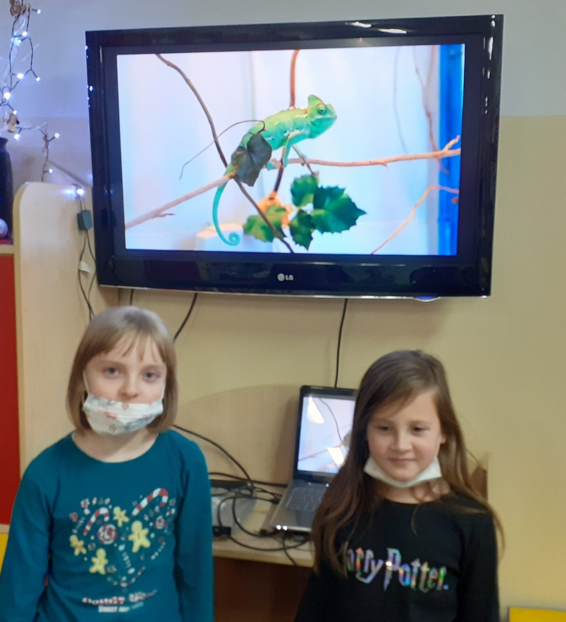 W ramach projektu tym razem dzieci wykonały zadanie pt. "Gdzie jest zwierzę?" Świetliczaki obejrzały film edukacyjny z którego dowiedziały się czym jest zjawisko mimetyzmu i mimikry w przyrodzie. Poznały przykłady kamuflażu wśród zwierząt i wiele ciekawostek na temat kameleonów. Na koniec dzieci wykonały prace plastyczne, które teraz zdobią naszą salę świetlicową.
