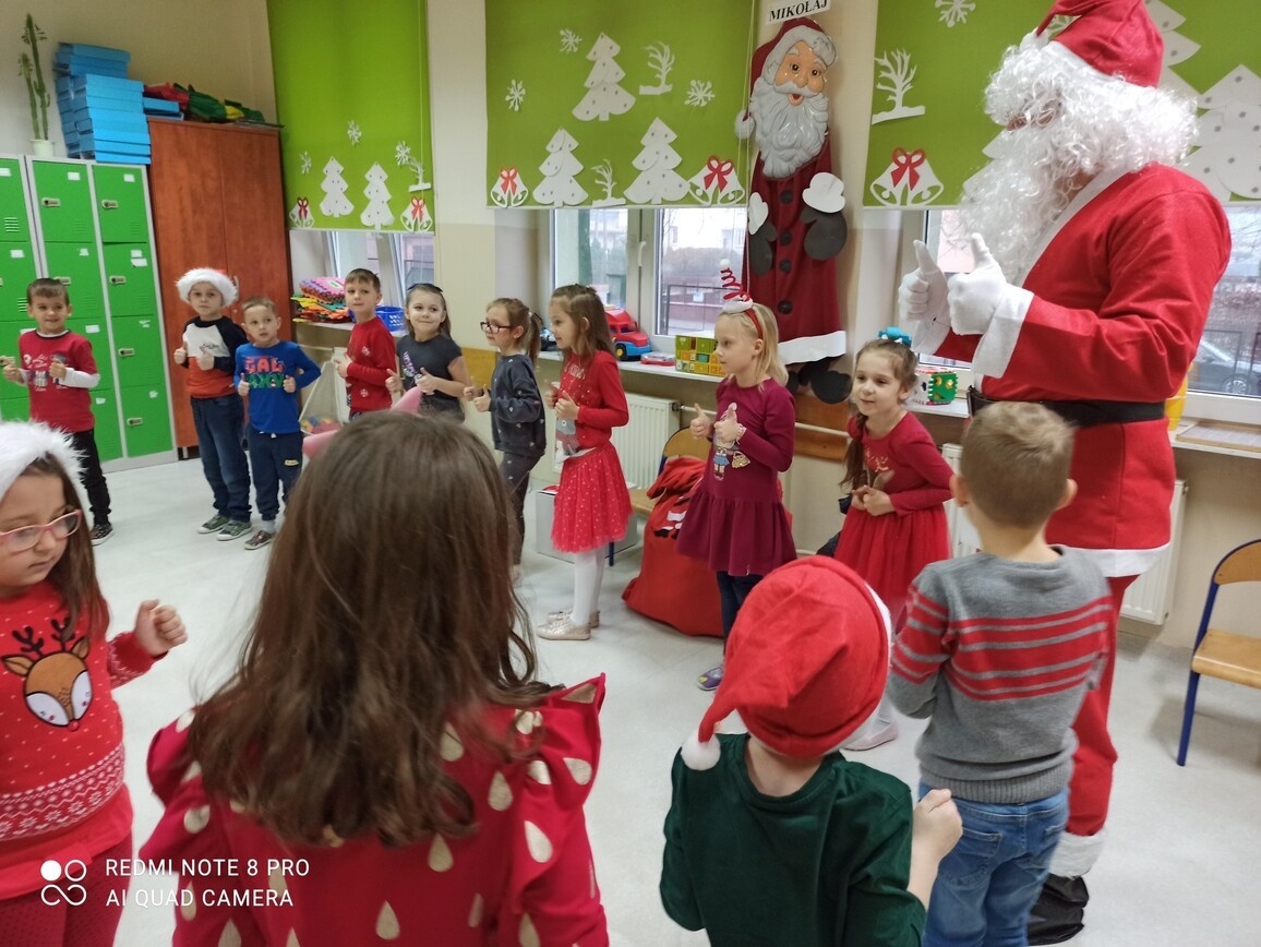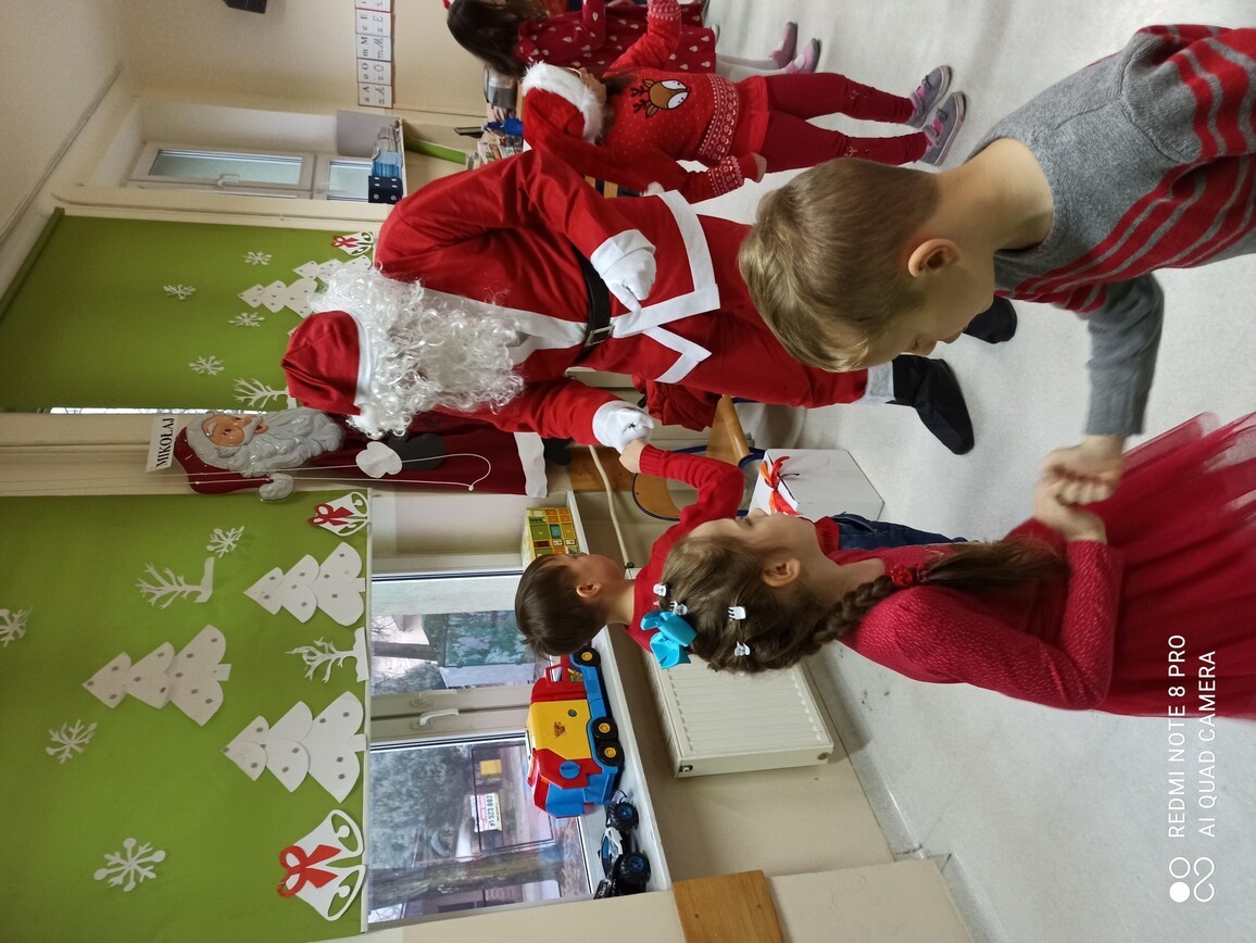 Szósty grudnia to wyjątkowy dzień. Każde dziecko czeka na prezenty od Świętego Mikołaja. W tym dniu biblioteka szkolna została przystrojona w okolicznościową dekorację, a panie bibliotekarki przygotowały dla uczniów, którzy wypożyczali książki drobne niespodzianki: słodkie upominki oraz mikołajkowe zakładki do książek, do samodzielnego pokolorowania ;) W gablocie na korytarzu pojawiły się propozycje książek o tematyce świąteczno - mikołajkowej oraz plakaty z informacjami o akcji prowadzonej w bibliotece. Nie zabrakło również pamiątkowych zdjęć uwieczniających ten miły i radosny dzień.