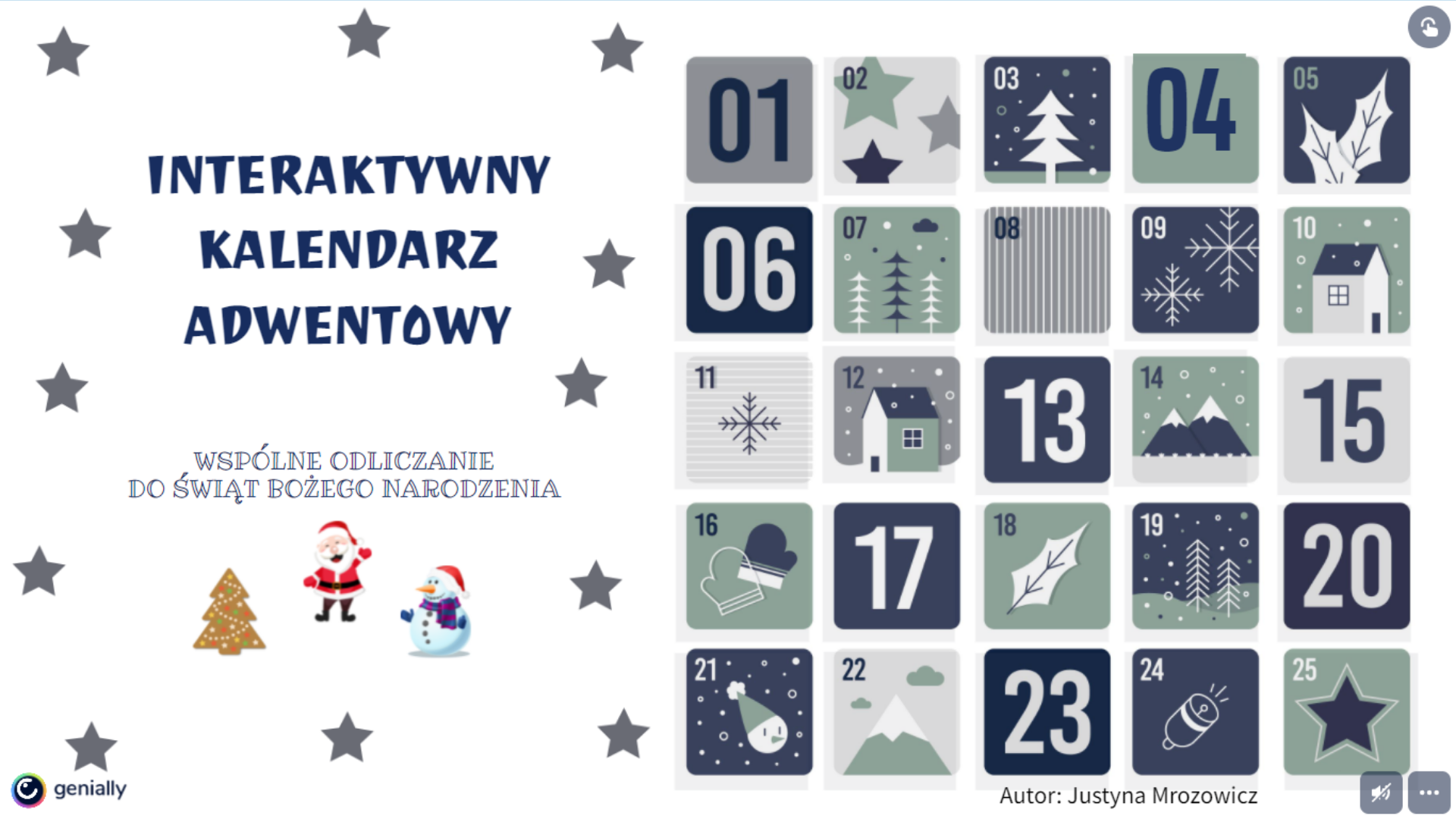 Zapraszamy uczniów klas 4 do wspólnego odliczania dni do Świat Bożego Narodzenia za pomocą Matematycznego Kalendarza Adwentowego. Codziennie aktywne będzie nowe okienko, pod którym ukryte jest zadanie. Wasi nauczyciele matematyki na pewno docenią starania dodatkową oceną z tego przedmiotu.