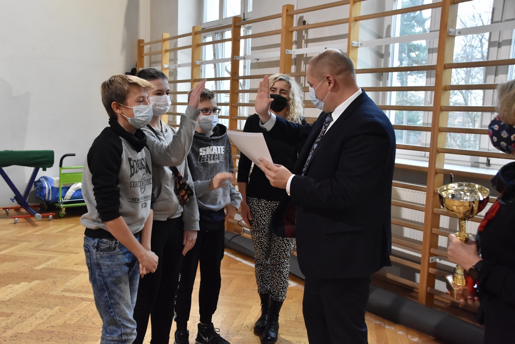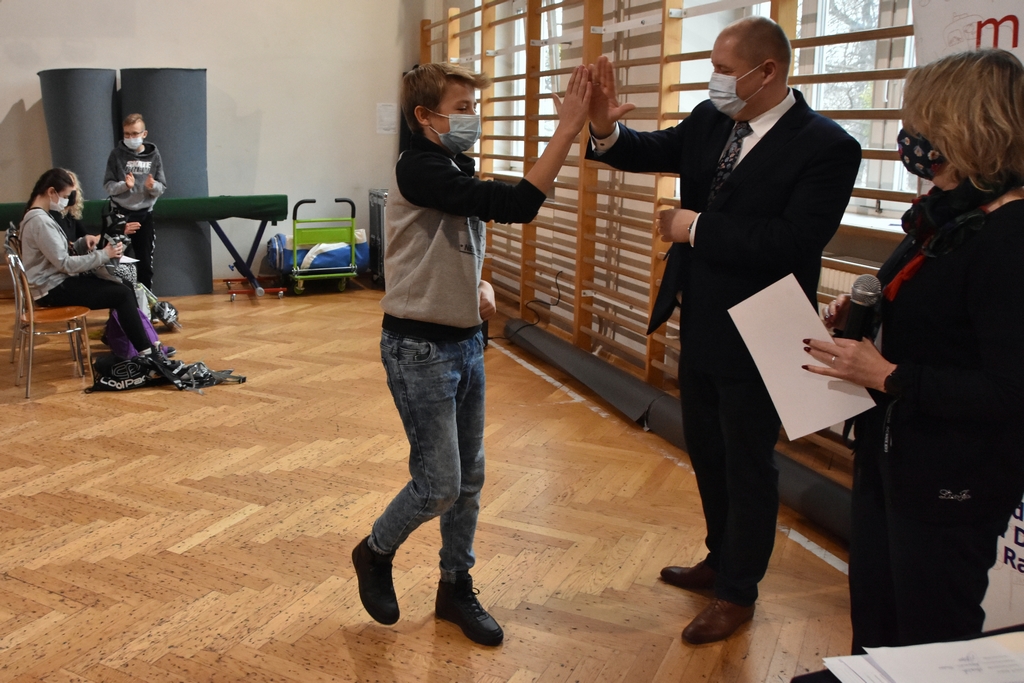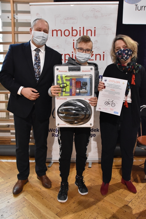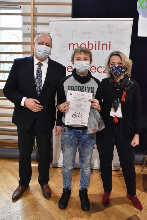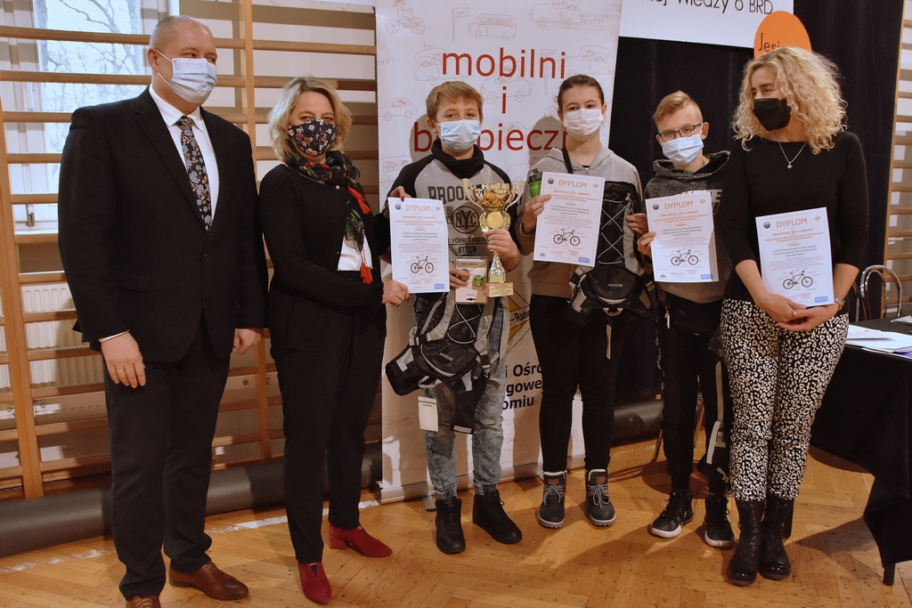 26 listopada 2021r. reprezentacja naszej szkoły w składzie: Maksymilian Kowalczyk, Nadia Szczepaniak z kl. 6b oraz Piotr Słoniewski z kl. 7c (zawodnik rezerwowy Kacper Pawlik z kl. 6b), wzięła udział w XXIII Powiatowym Turnieju Wiedzy o Bezpieczeństwie Ruchu Drogowego "JESIENNY ROWER". Turniej został zorganizowany przez MDK im. H. Stadnickiej, WORD, Wydział Ruchu Drogowego KM Policji w Radomiu pod patronatem Prezesa AMD Auto Centrum SKODA w Radomiu. Zawodnicy musieli wykazać się znajomością przepisów ruchu drogowego, zasad udzielania I pomocy przedlekarskiej oraz umiejętnością w zakresie sprawdzenia stanu technicznego roweru.