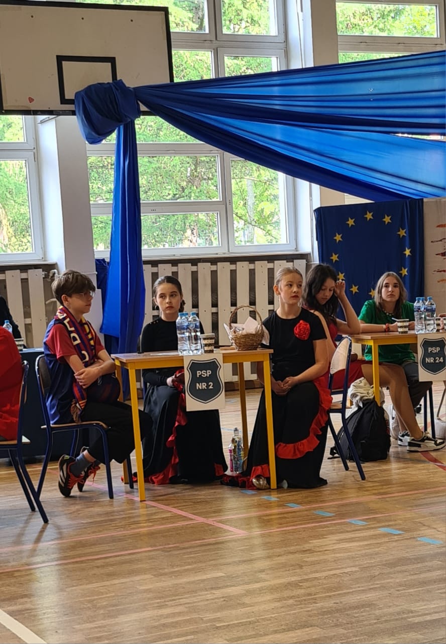 Nasza szkoła prezentowała Hiszpanię. Uczennice zachwyciły publiczność energetycznym tańcem pasodoble i wykonaniem hiszpańskiej piosenki, natomiast Piotr przedstawił piłkarza FC Barcelony. Występ naszych reprezentantów został bardzo wysoko oceniony przez komisję konkursową.