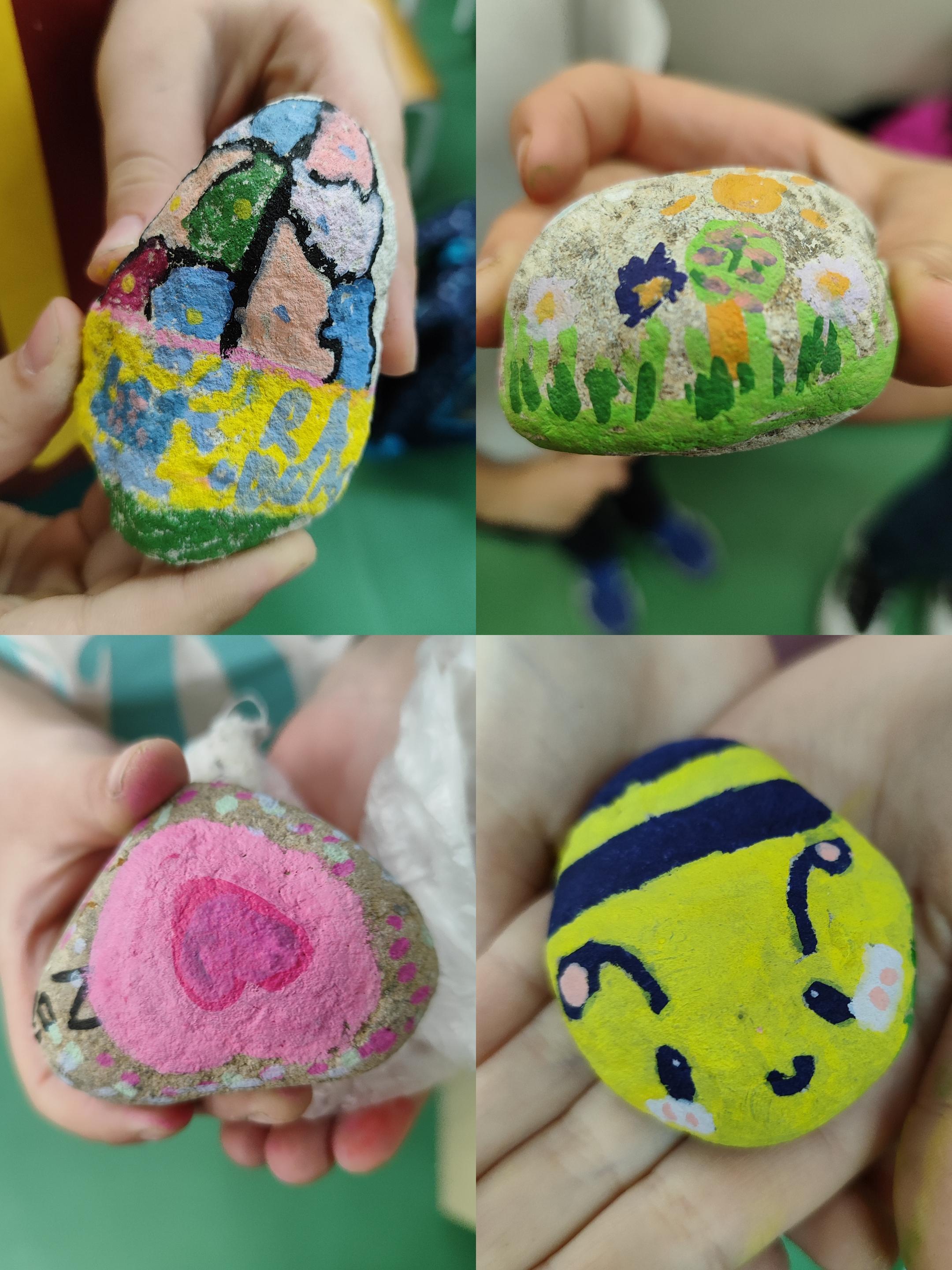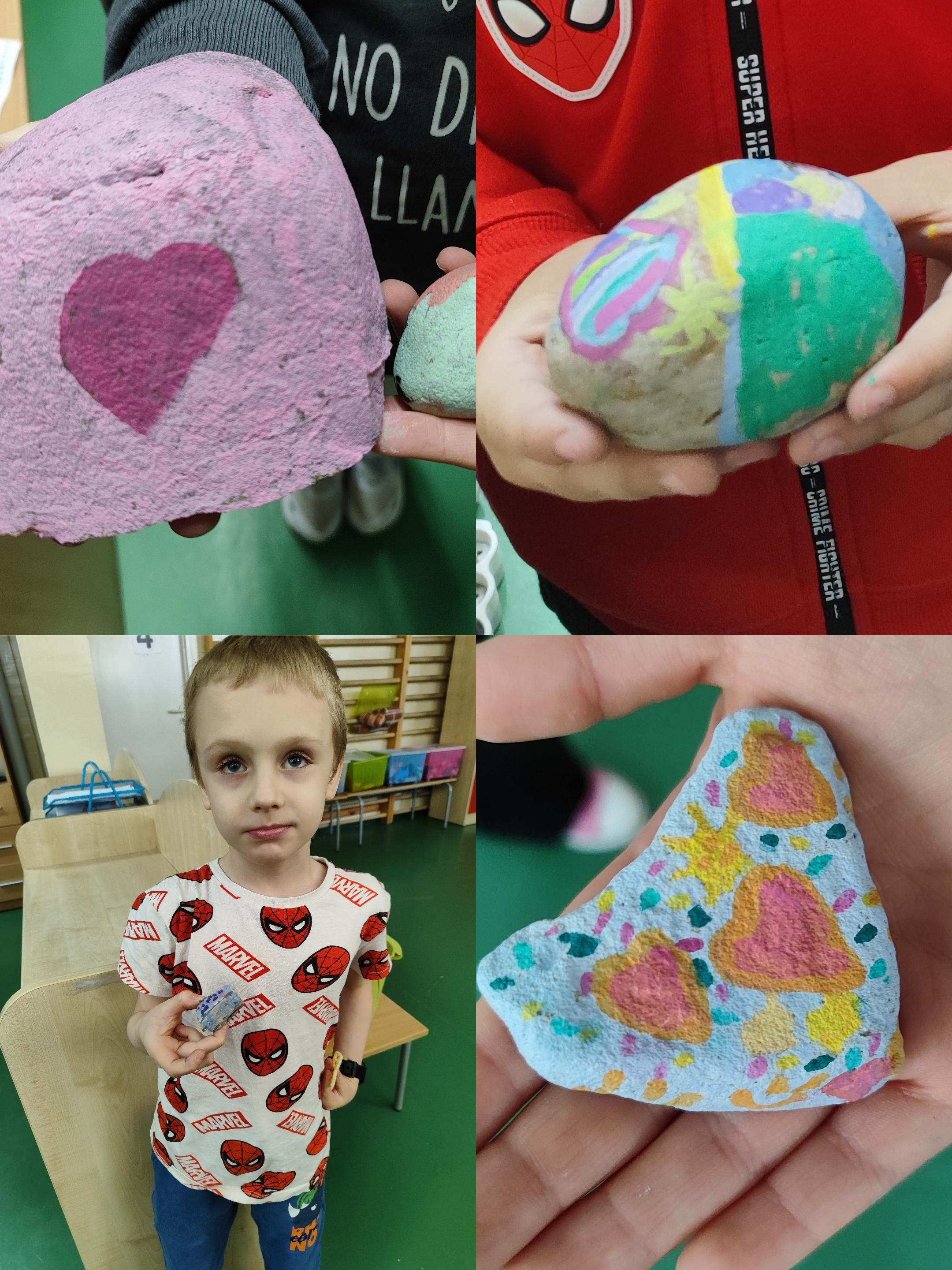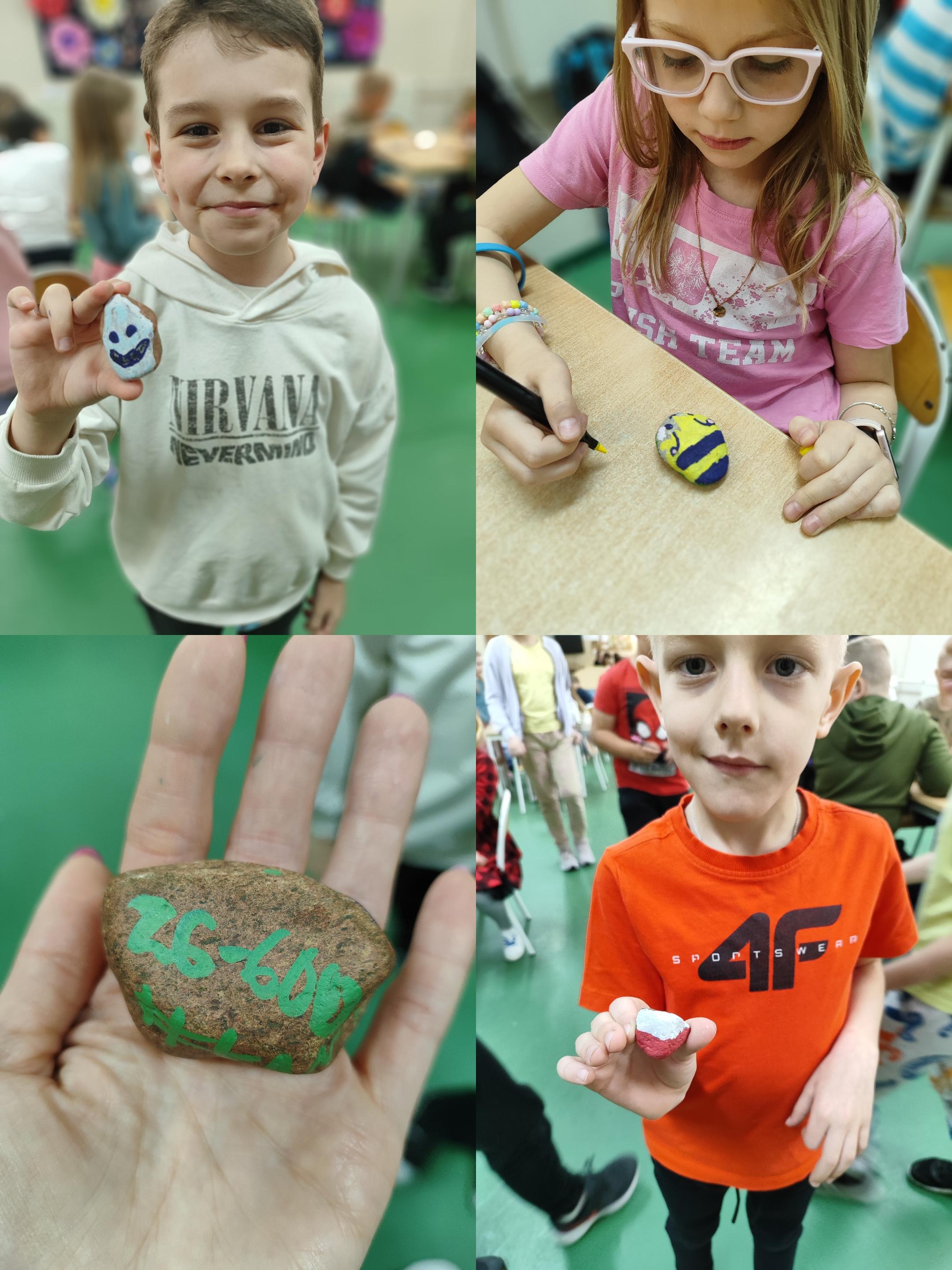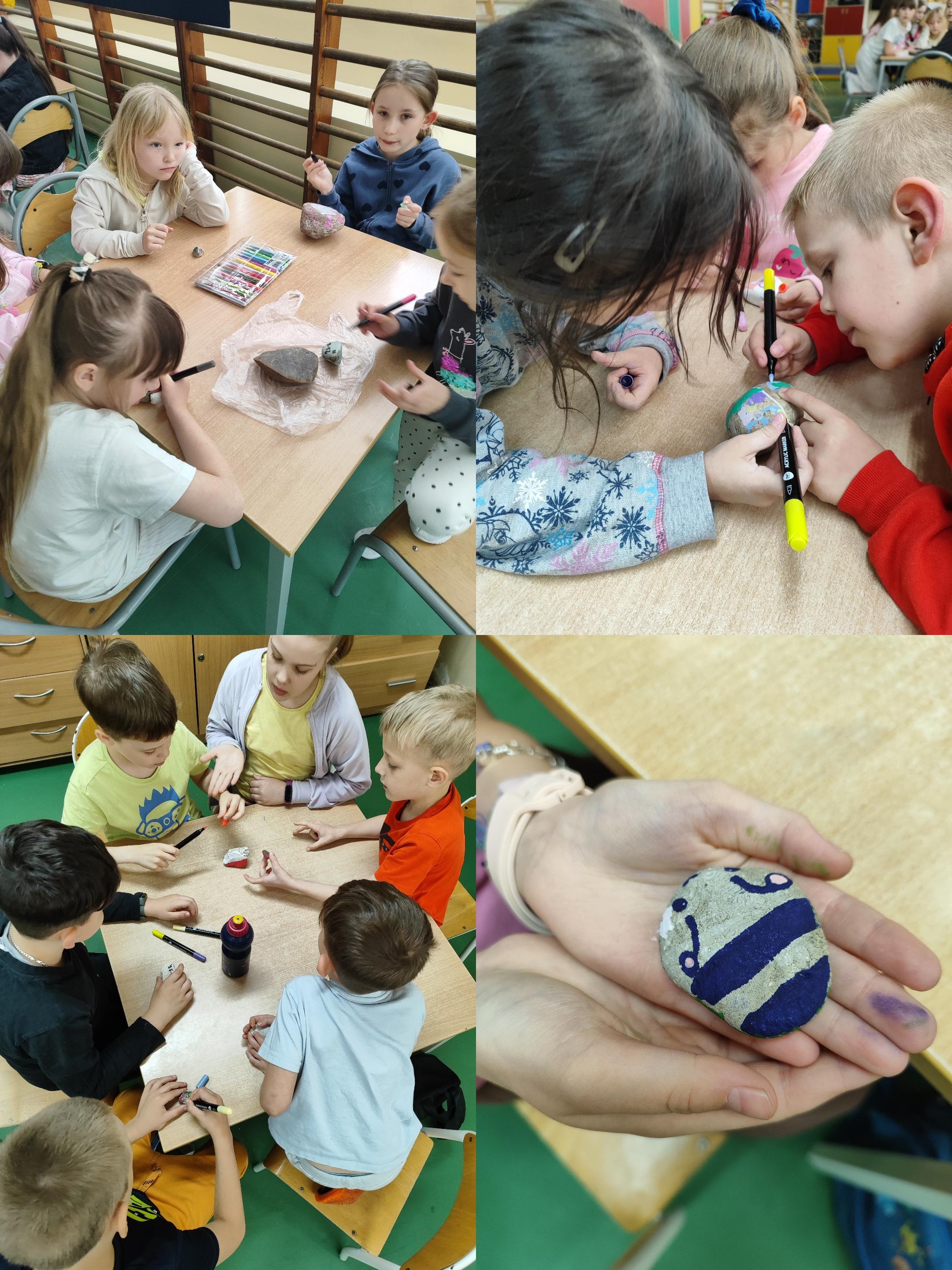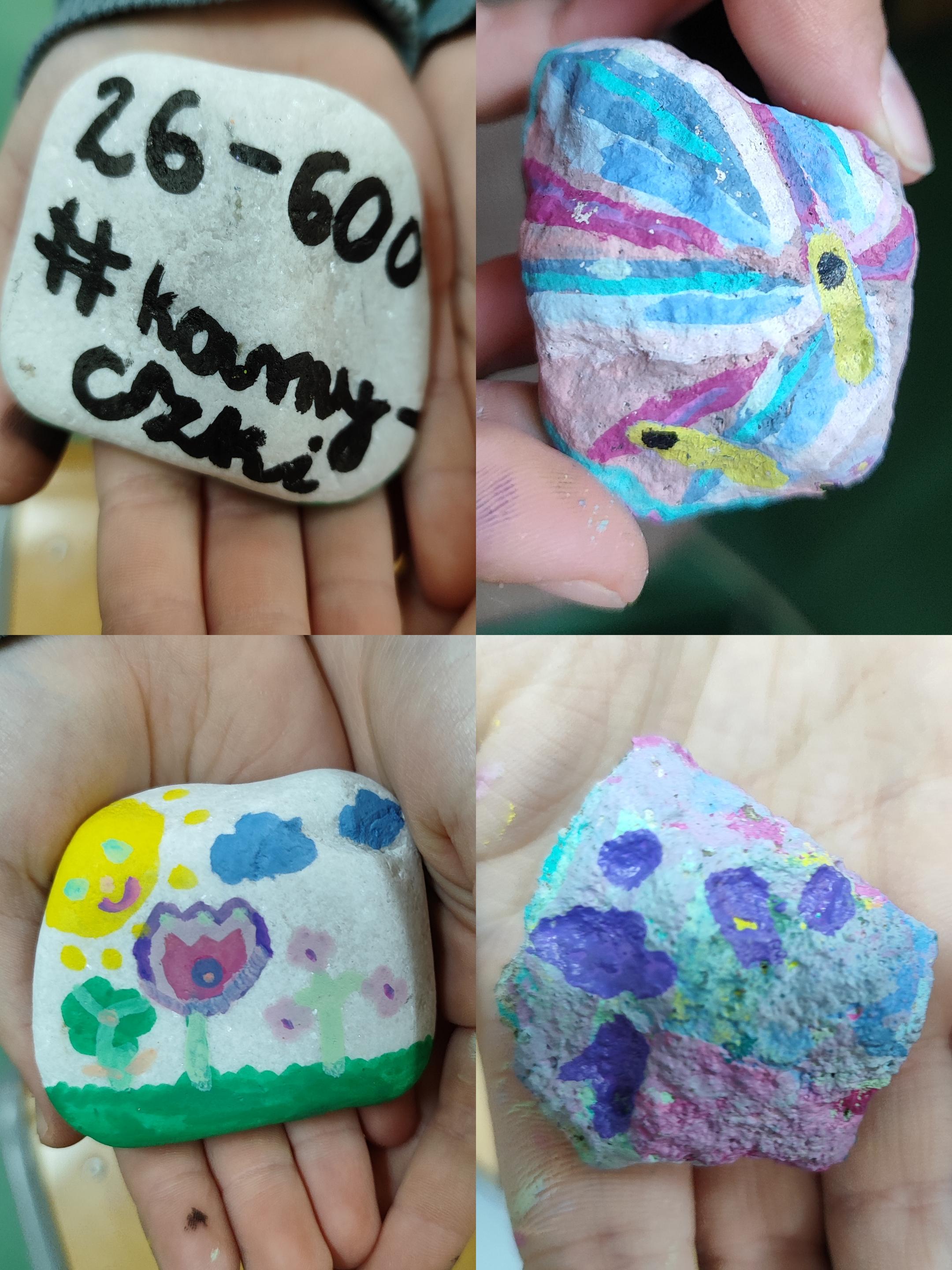 Dzieci w ramach pracy plastycznej malowali na kamieniach dołączając do ogólnopolskiej akcji #kamyczki.pl, które zabrały do domu.