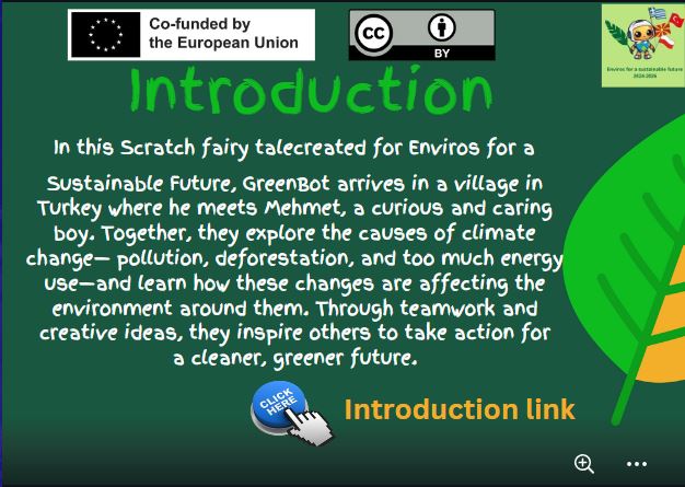 Greenbot otrzymuje wiadomość od przyjaciela z Turcji na temat zmian klimatycznych, po czym udaje się do tego kraju i analizuje problem związany z nadmiernym zużyciem wody. Pierwszym krajem, który odwiedził była Turcja, gdzie napotkał problemy z wodą. Kolejnym krajem, który odwiedza nasz bohater jest Polska a tam problem z recyklingiem. Następnie Greenbot podróżuje do Macedonii, gdzie dowiaduje się o problemie związanym ze smogiem. Kończy swoją podróż w Grecji, w której mierzy się z problemem marnowania żywności. Projekt łączy naukę programowania, twórcze myślenie oraz edukację klimatyczną, rozwijając u uczniów świadomość ekologiczną i kompetencje cyfrowe.