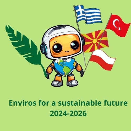 W grudniu 2024 nasza szkoła po raz kolejny przystąpiła do projektu Erasmus+ "Enviros for a Sustainable Future", tym razem w roli szkoły koordynującej. W projekcie uczestniczą szkoły z: Turcji, Macedonii Północnej, Grecji. Celem projektu jest zwrócenie uwagi na zmiany klimatyczne poprzez włączenie innowacyjnych metod nauczania takich jak Scrum oraz eksperymentalną Metodę Kolb. W projekcie zaangażowani są uczniowie klas 4-8. Do zadań uczestników będzie należało zaprogramowanie ekologicznej bajki w Scratch, nagranie podcastów związanych z recyklingiem, wodą, powietrzem i niemarnowaniem jedzenia, przeprowadzenie eksperymentów ekologicznych i stworzenie na ich podstawie ebooka i przeprowadzenie kampanii na temat zmian klimatycznych.