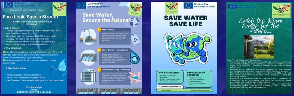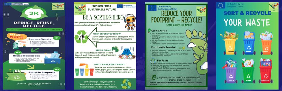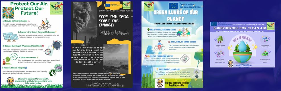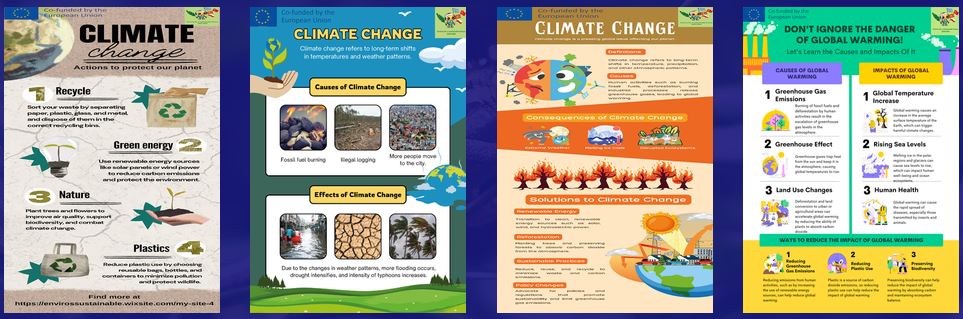 W celu zwiększenia świadomości o zmianach klimatycznych każda szkoła przygotowała plakaty w programie Canva. Macedonia - plakaty związane z dbaniem o powietrze, Turcja Soke - przyczyny i skutki zmian klimatycznych, Turcja Hurriet - woda, Grecja - niemarnowanie żywności, Polska - recykling.