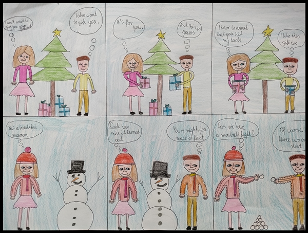 W ramach pracy nad projektem uczniowie z naszej szkoły i szkół partnerskich przygotowali piękne kartki świąteczne. Każda z nich zawierała życzenia świąteczne i noworoczne.