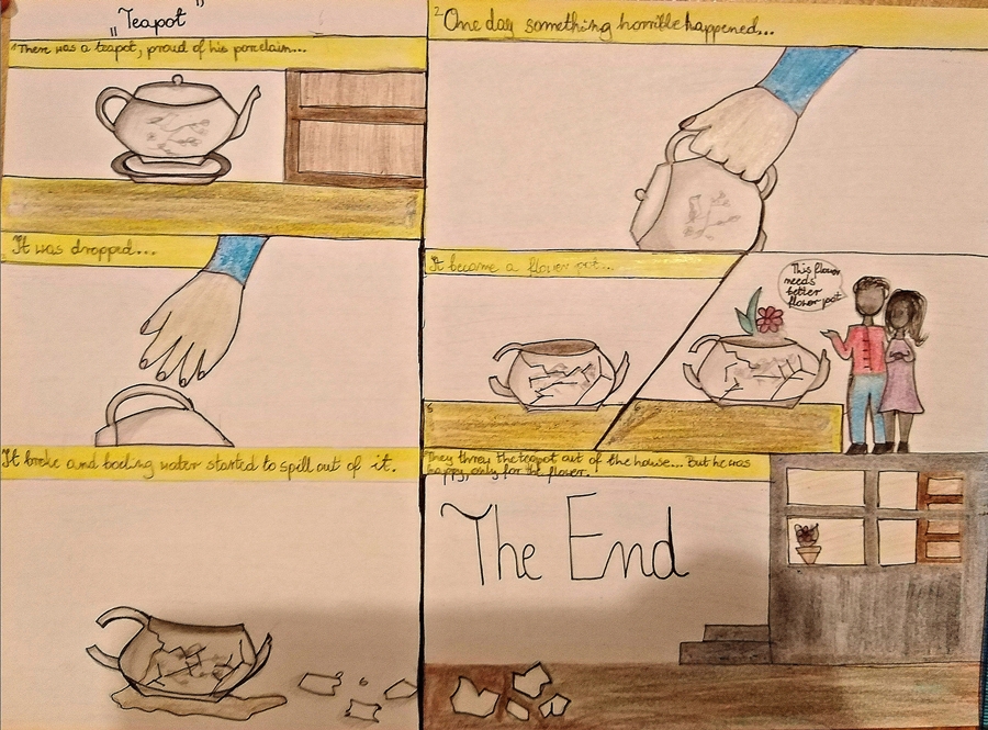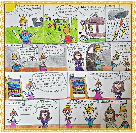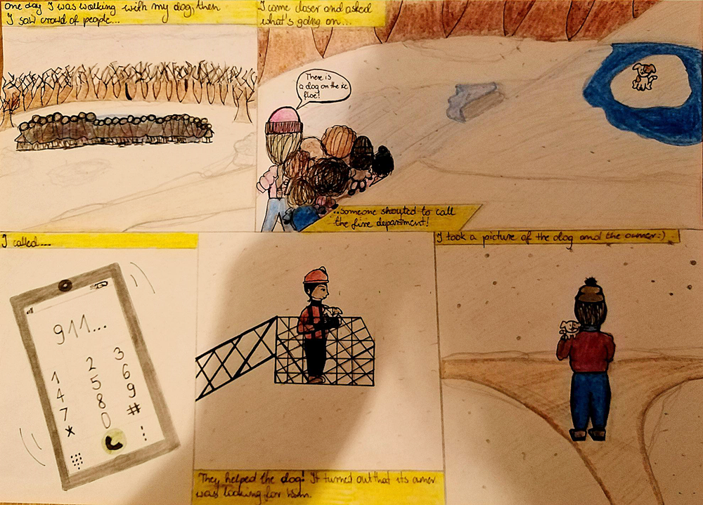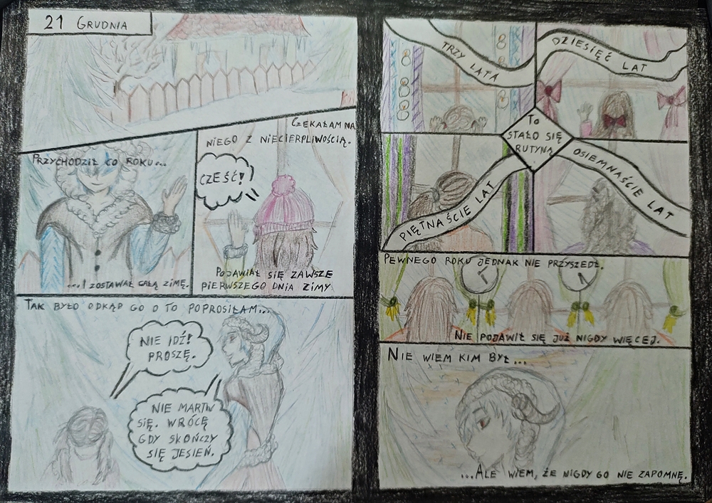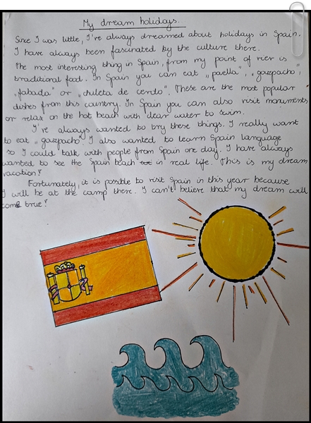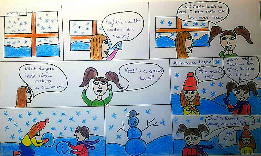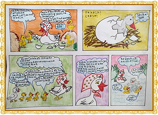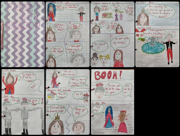 W ramach projektu uczniowie ze szkół partnerskich tworzyli jedną książkę opowiadającą o przygodach Erosi, które zwiedza różne państwa.
