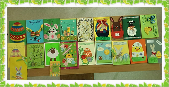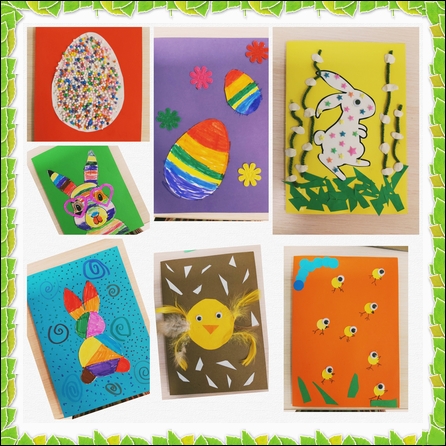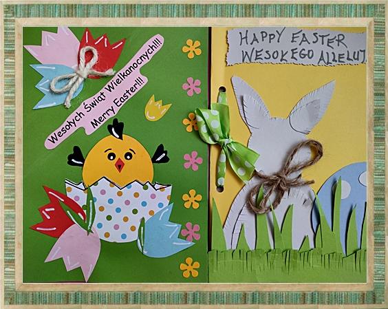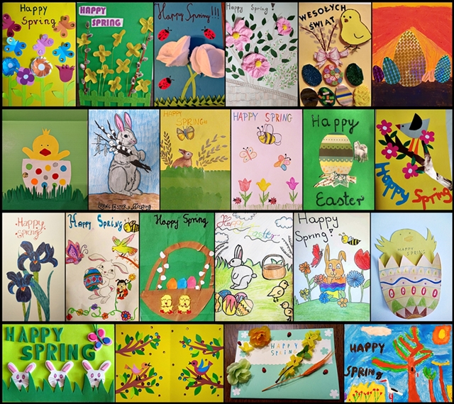 W ramach pracy nad projektem uczniowie z naszej szkoły i szkół partnerskich przygotowali piękne kartki wielkanocne. Każda z nich zawierała życzenia świąteczne.