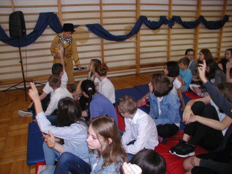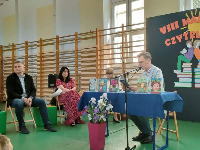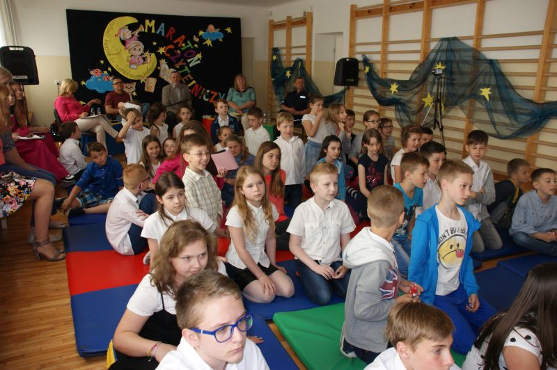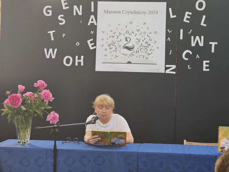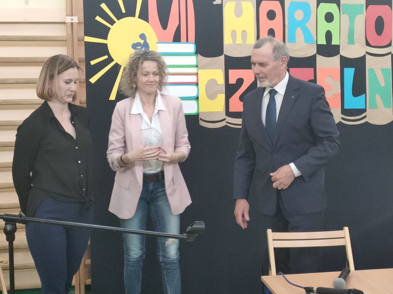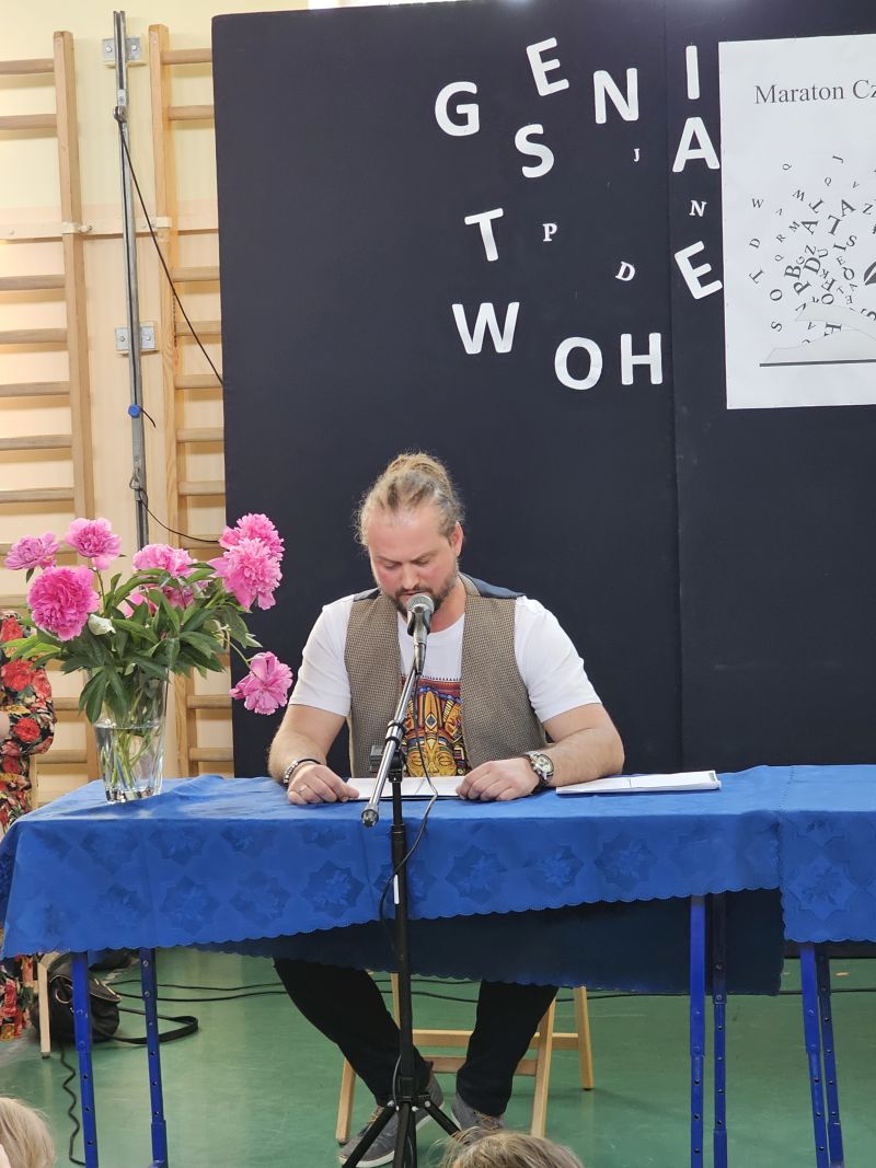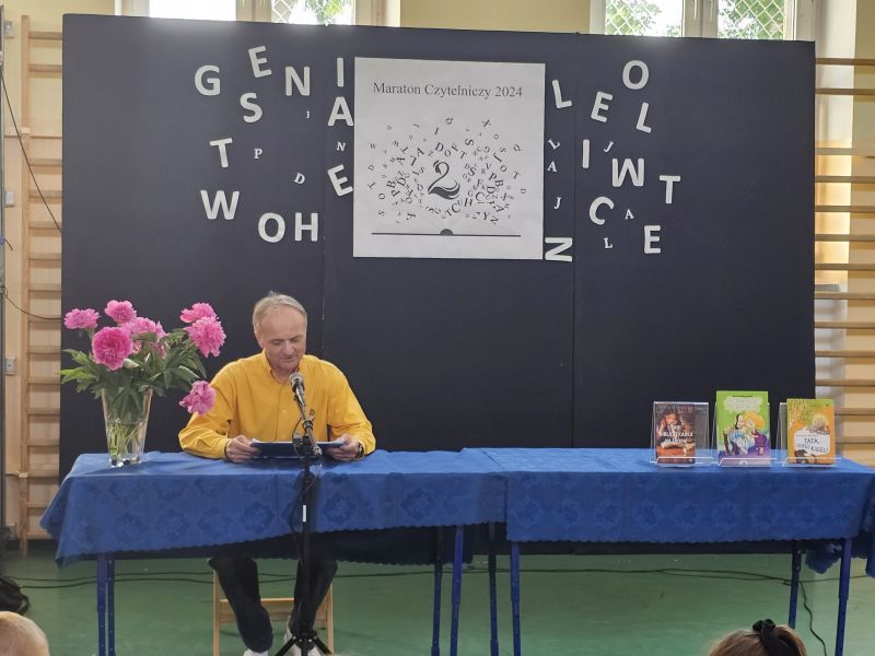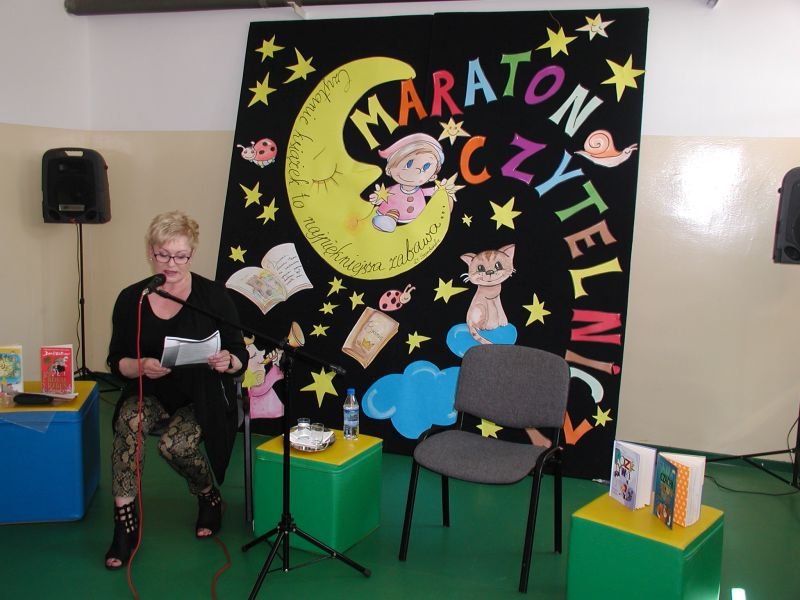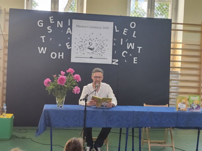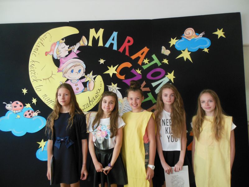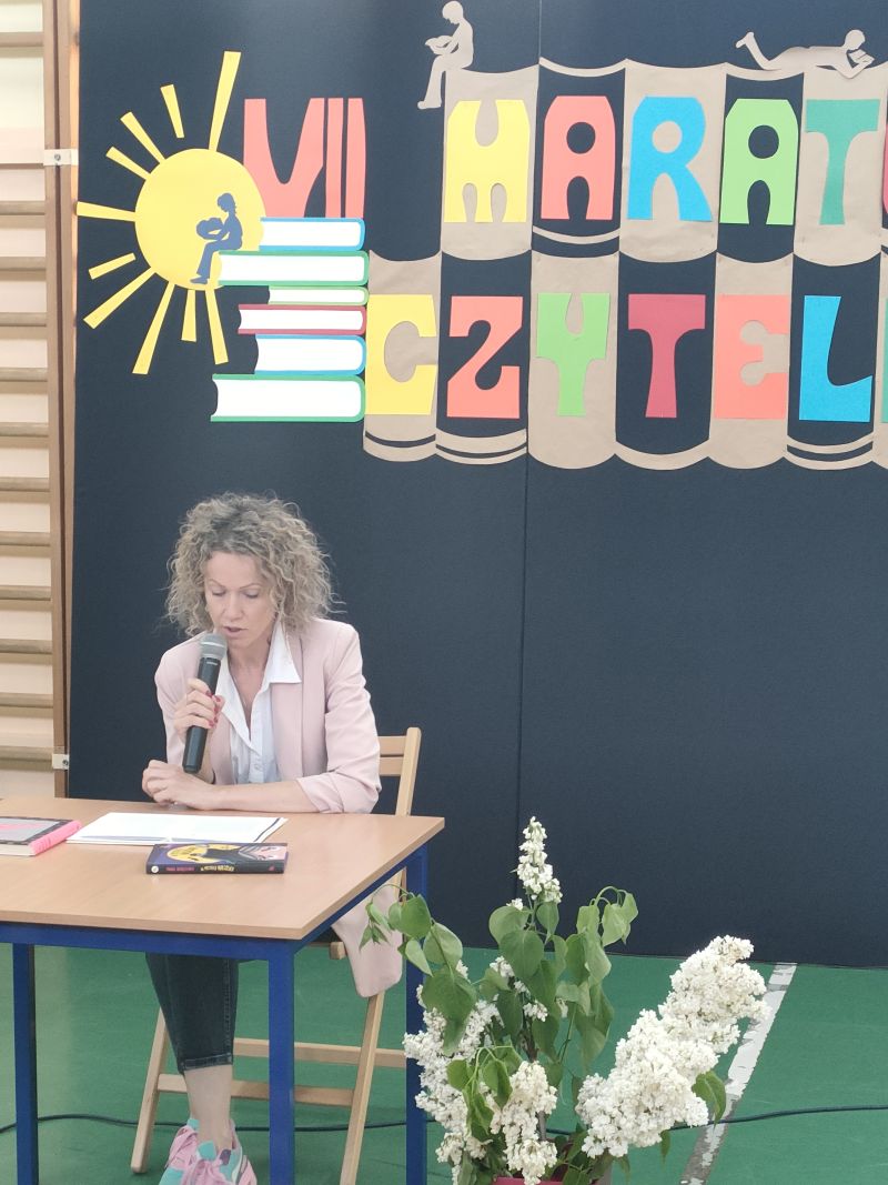 · Po odczytaniu przez gości przygotowanych fragmentów wybrani uczniowie zadają pytania i zagadki obecnym na Maratonie uczniom. Za poprawną odpowiedź wręczane są drobne upominki.