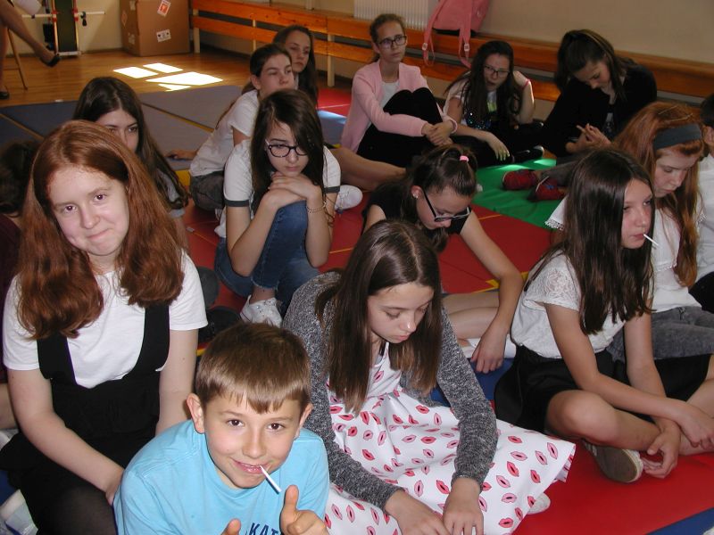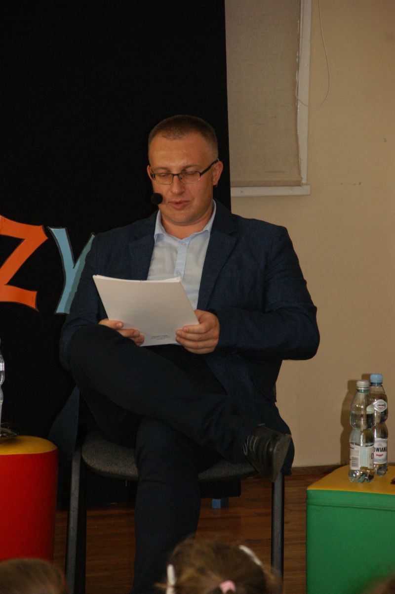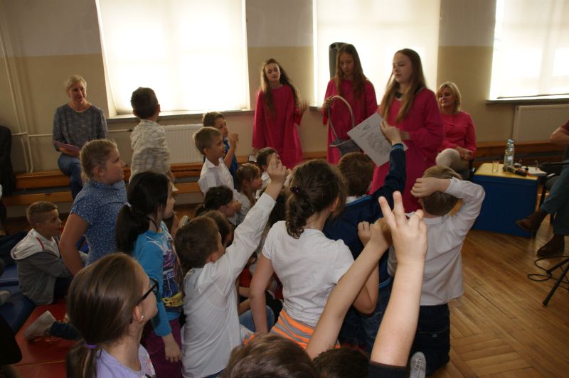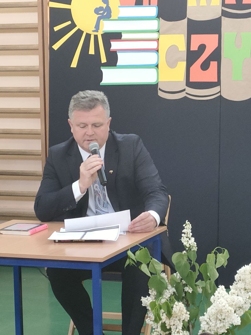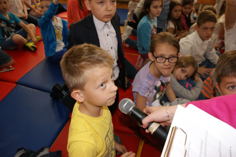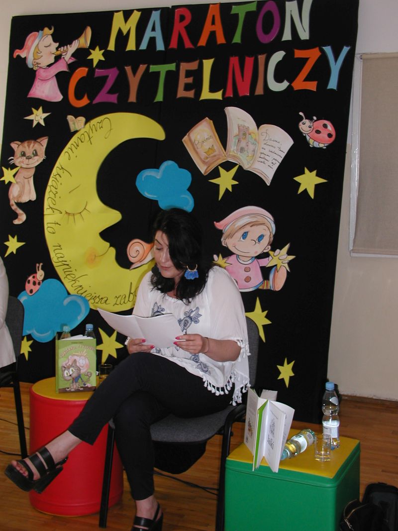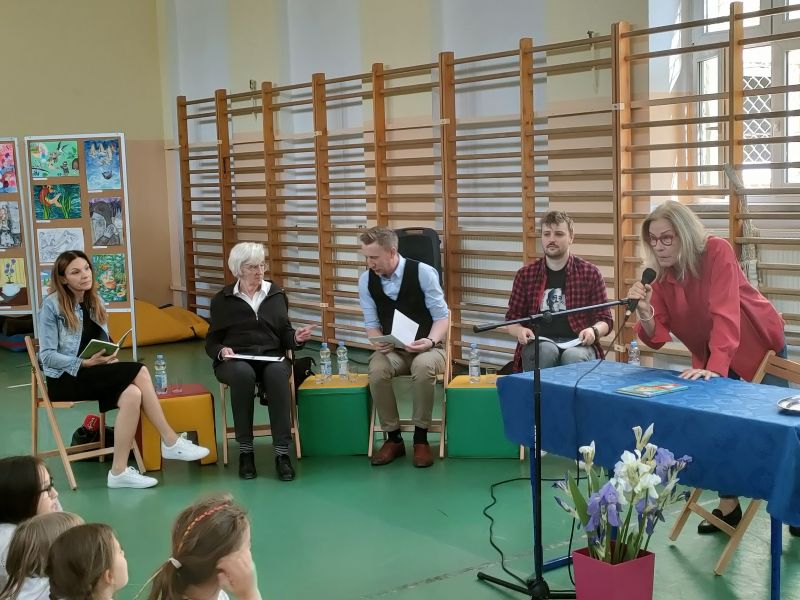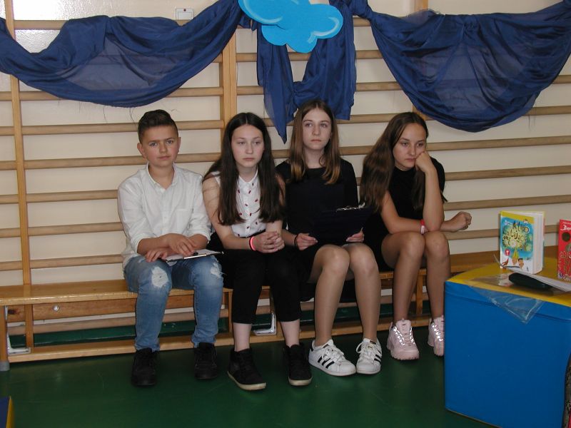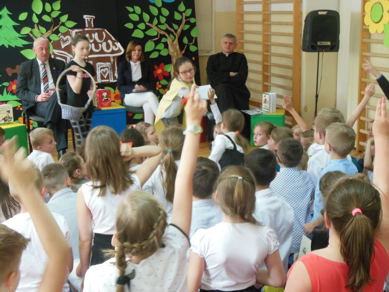 · Po odczytaniu przez gości przygotowanych fragmentów wybrani uczniowie zadają pytania i zagadki obecnym na Maratonie uczniom. Za poprawną odpowiedź wręczane są drobne upominki.